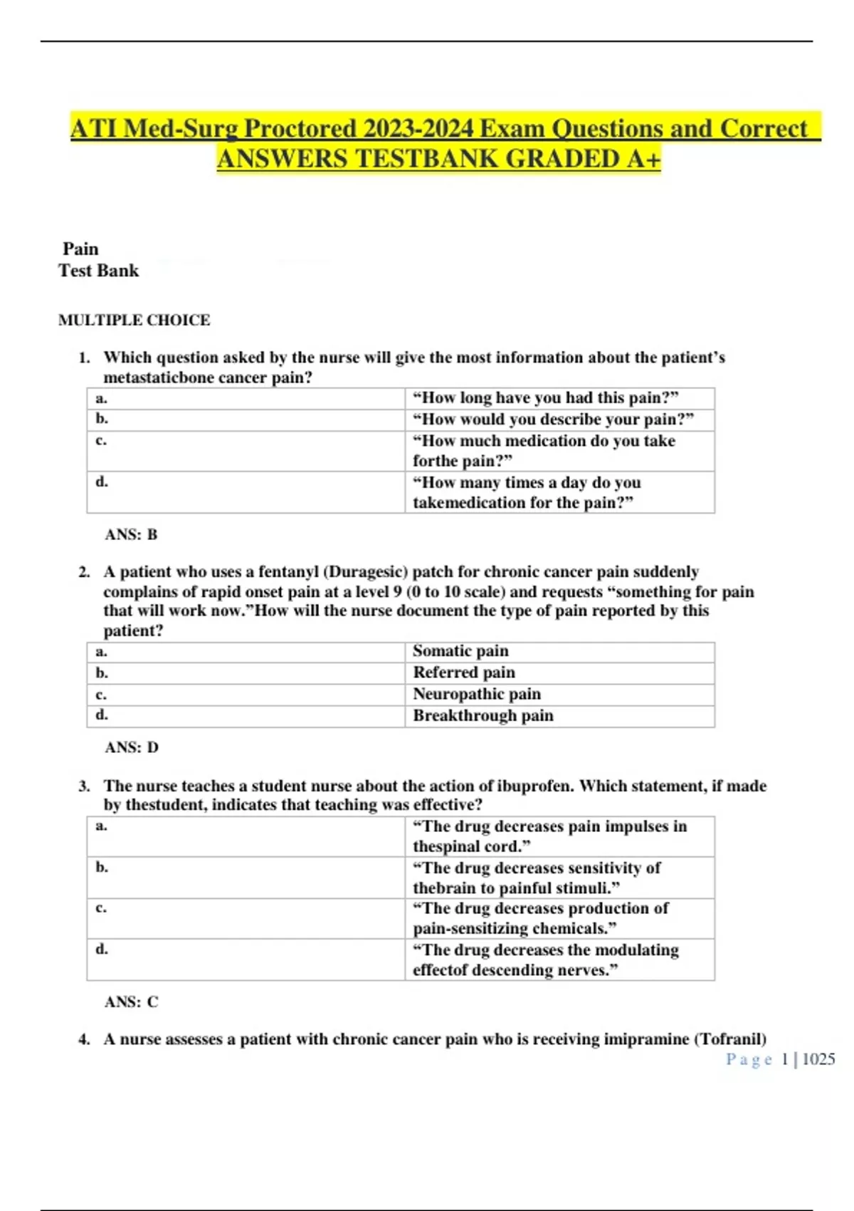 ATI Med-Surg Proctored Exam Questions and Correct ANSWERS TESTBANK GRADED A+