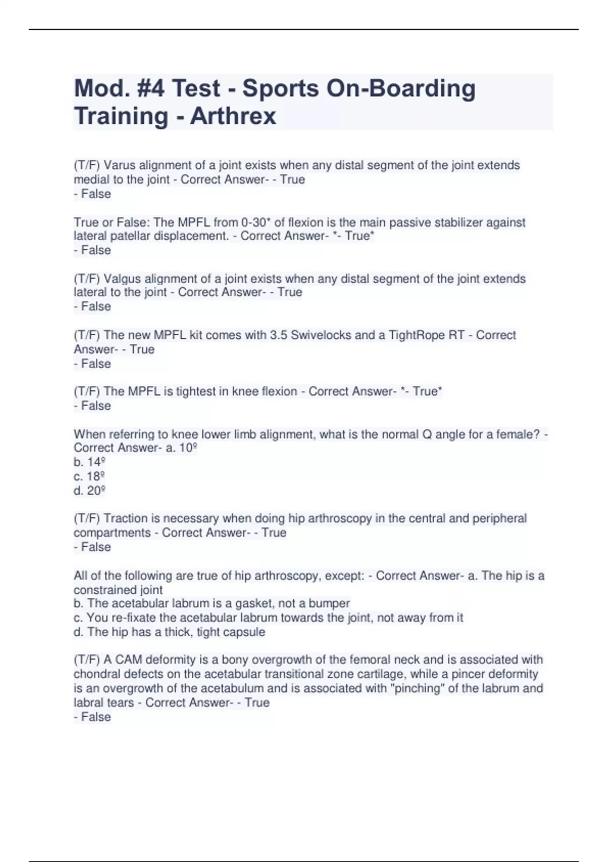 Module 4 Test - Sports On-Boarding Training – Arthrex questions and answers.