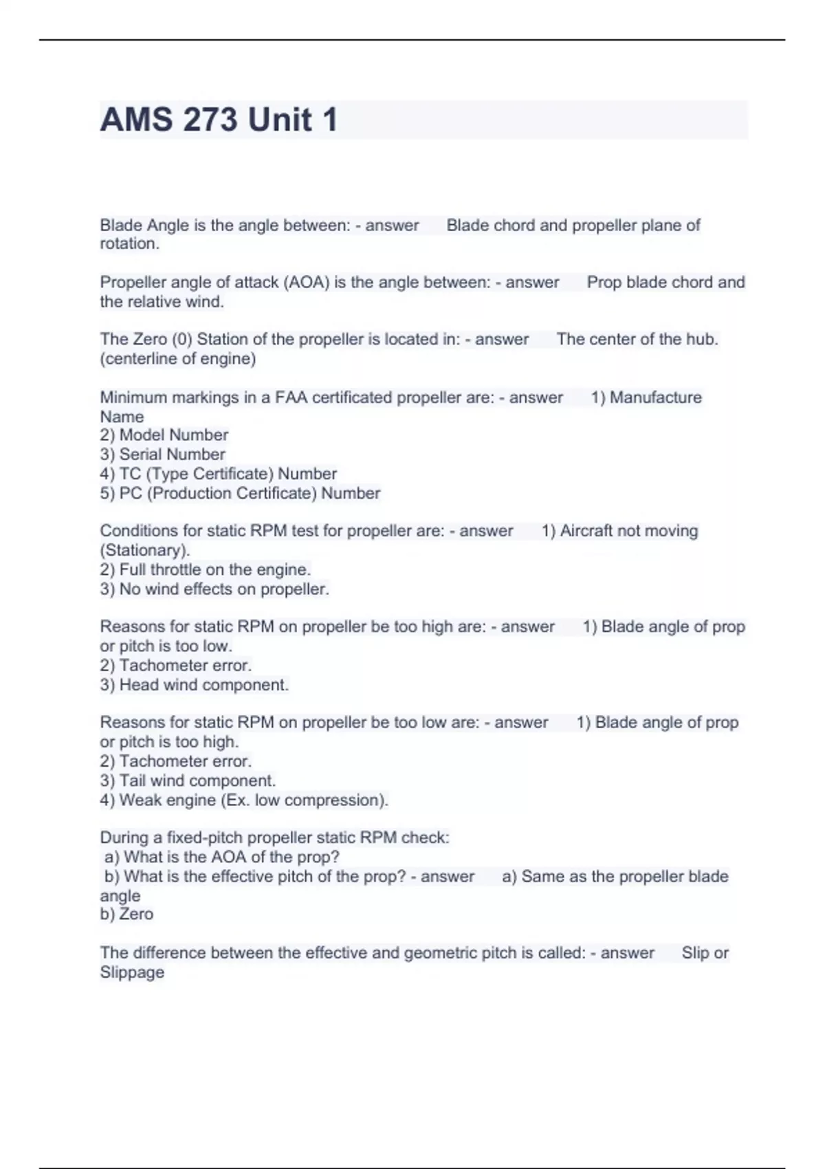 AMS 273 Unit 1 Questions and Answers ,fully solved