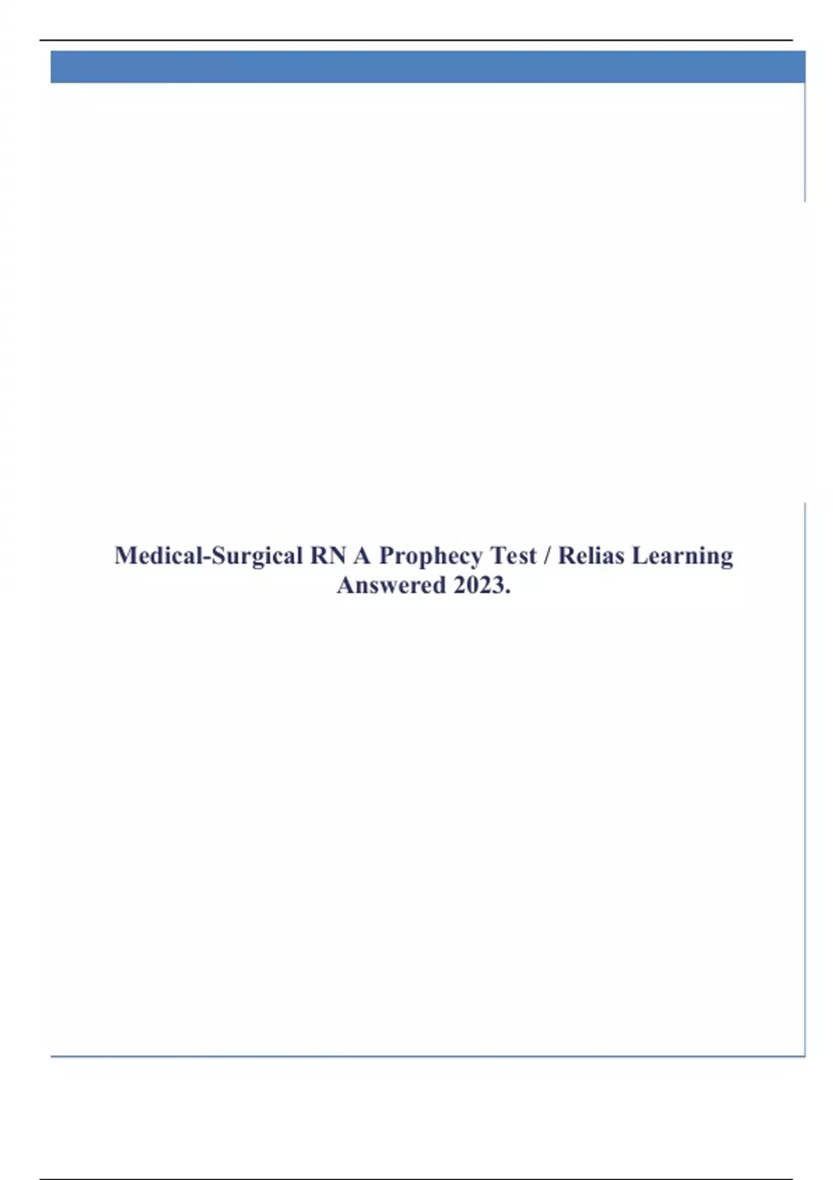 Medical-Surgical RN A Prophecy Test / Relias Learning Answered 2023.