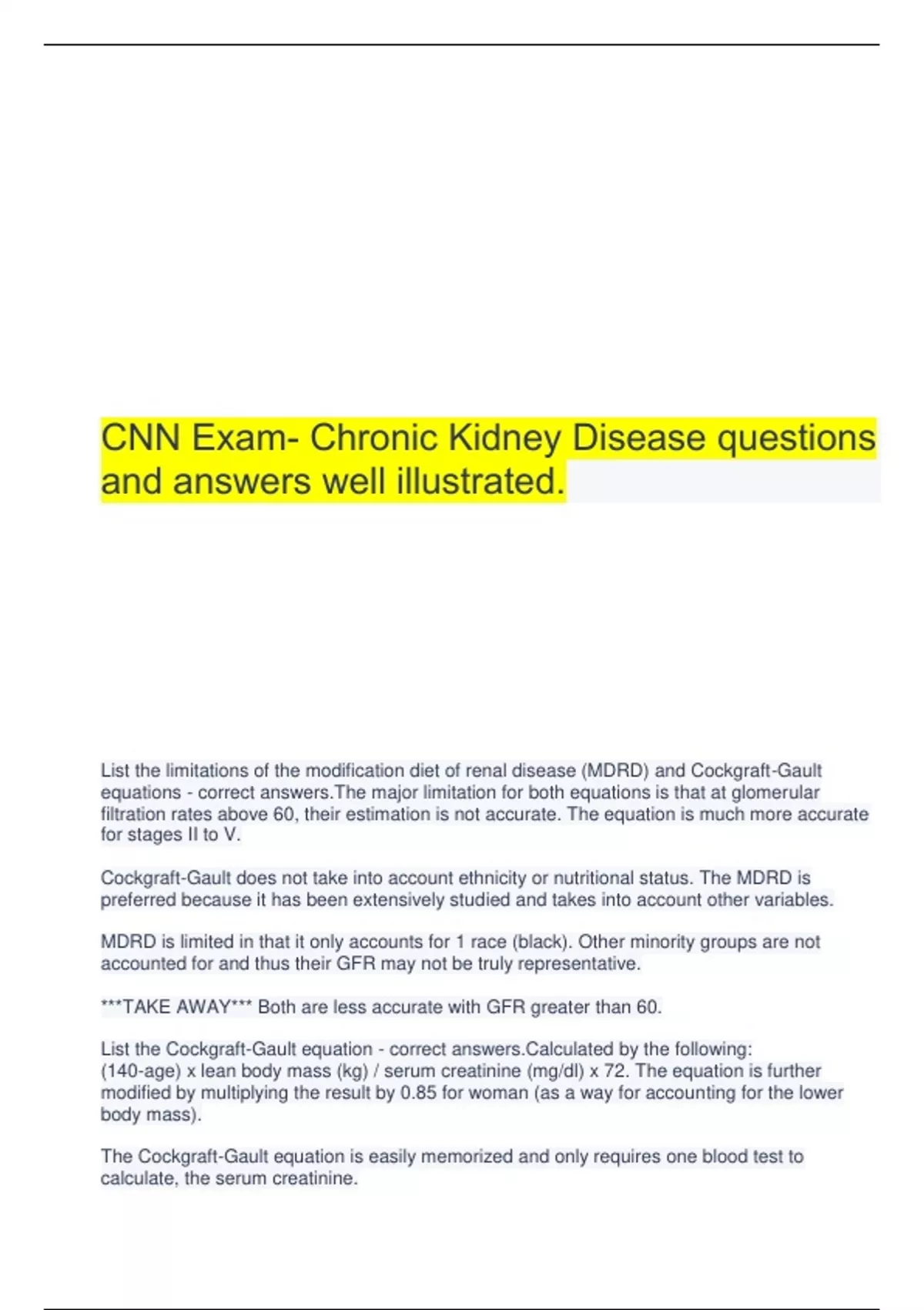 CNN Exam- Chronic Kidney Disease questions and answers well illustrated.