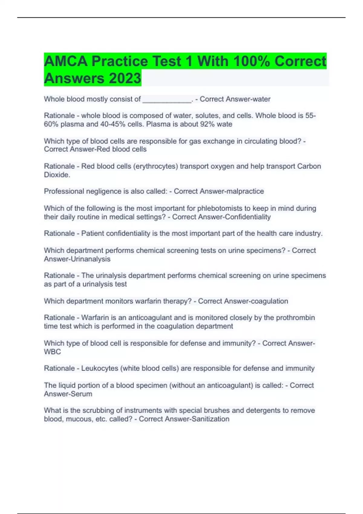 AMCA Practice Test 1 With 100% Correct Answers 2023