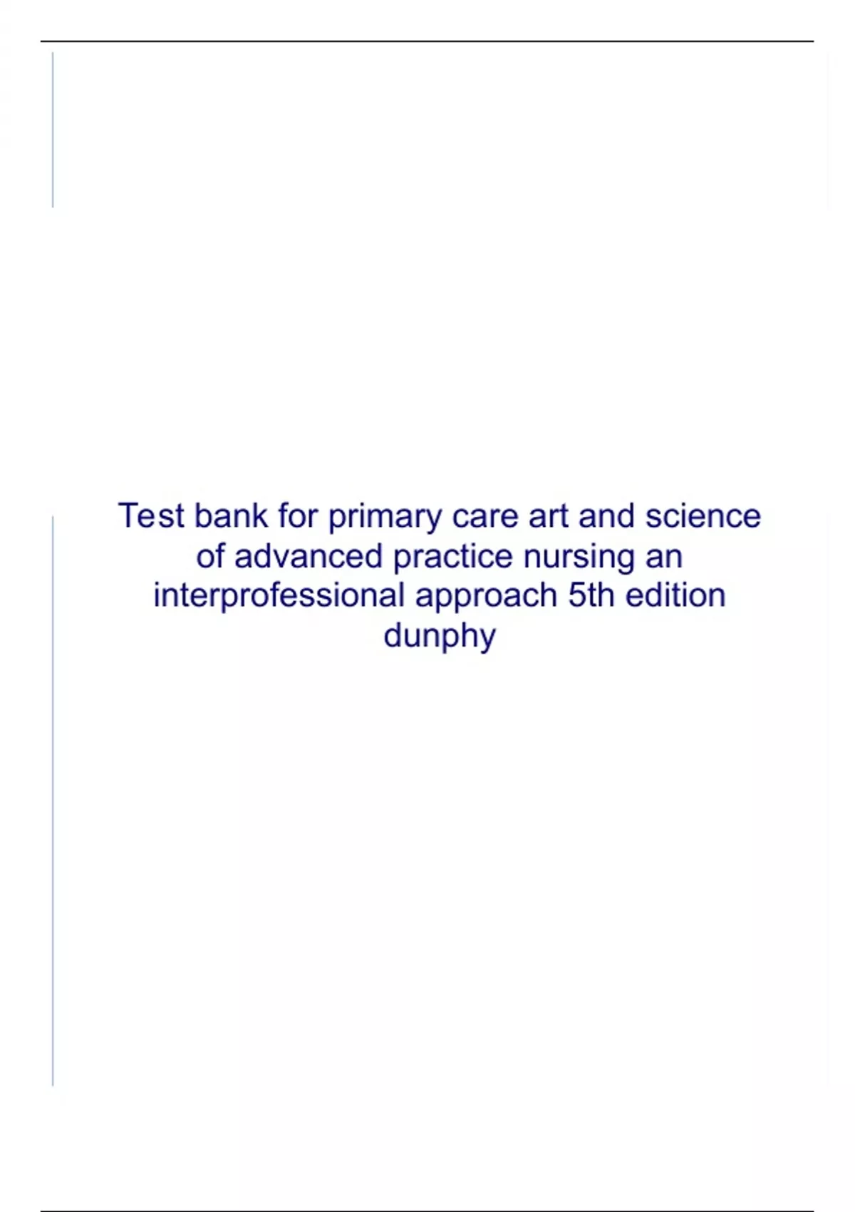 Test bank for primary care art and science of advanced practice nursing an interprofessional approach 5th edition dunphy