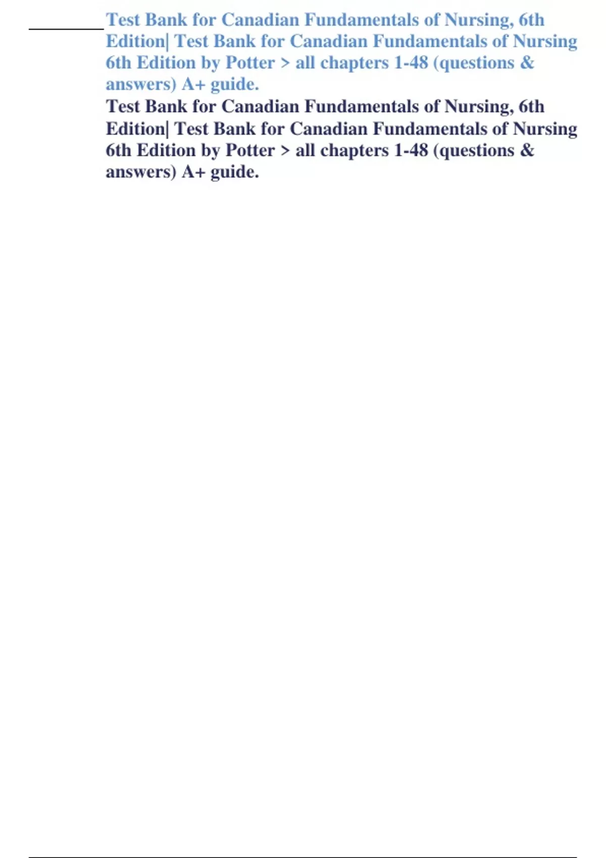 , Test Bank for Canadian Fundamentals of Nursing, 6th