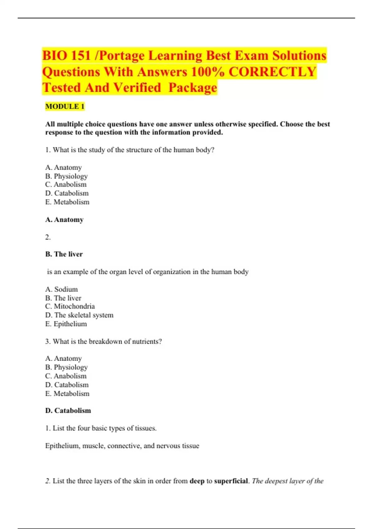 BIO 151 /Portage Learning Best Exam Solutions Questions With Answers 100% CORRECTLY Tested And Verified Package