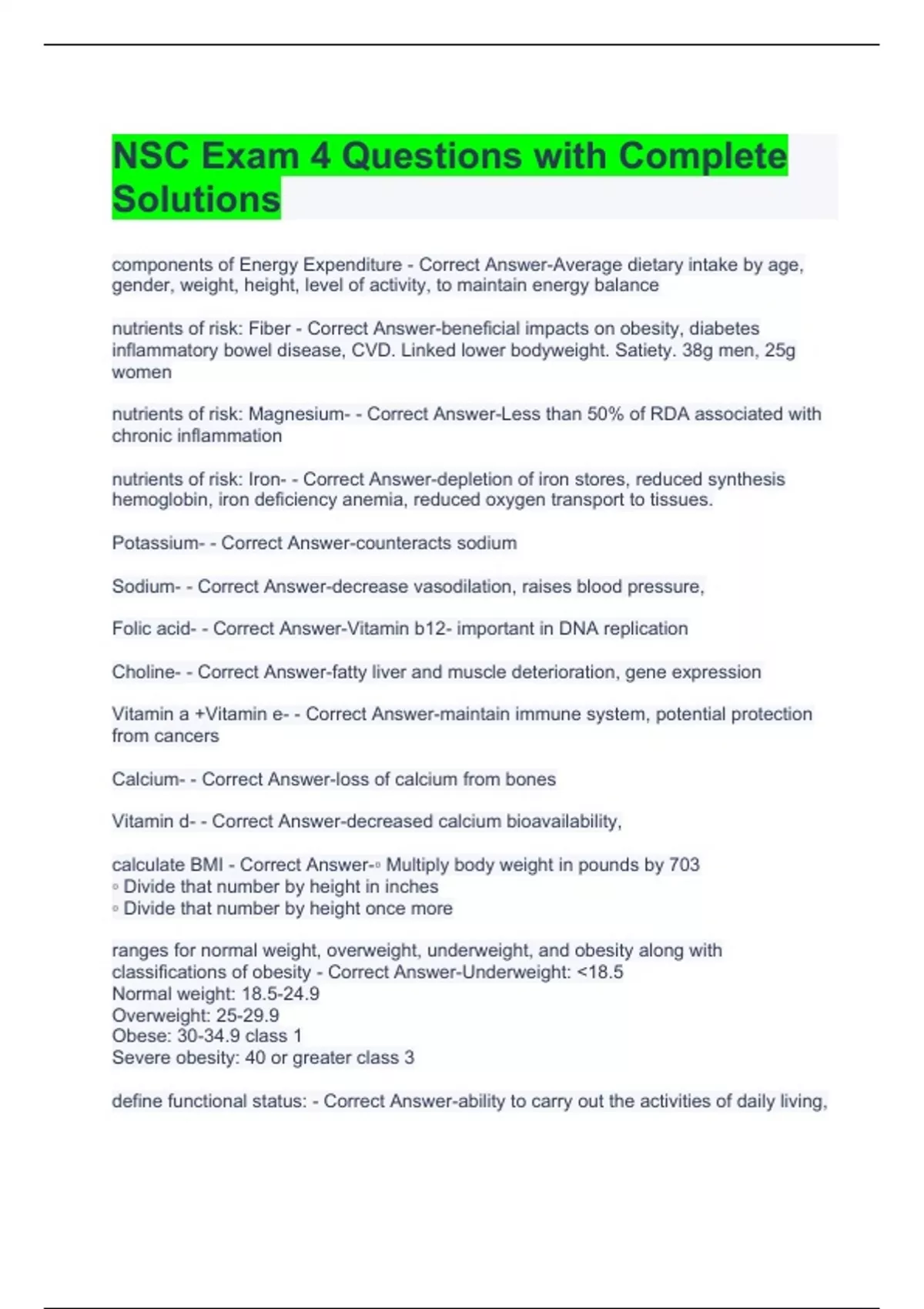 nsc exam 4 questions with complete solutions