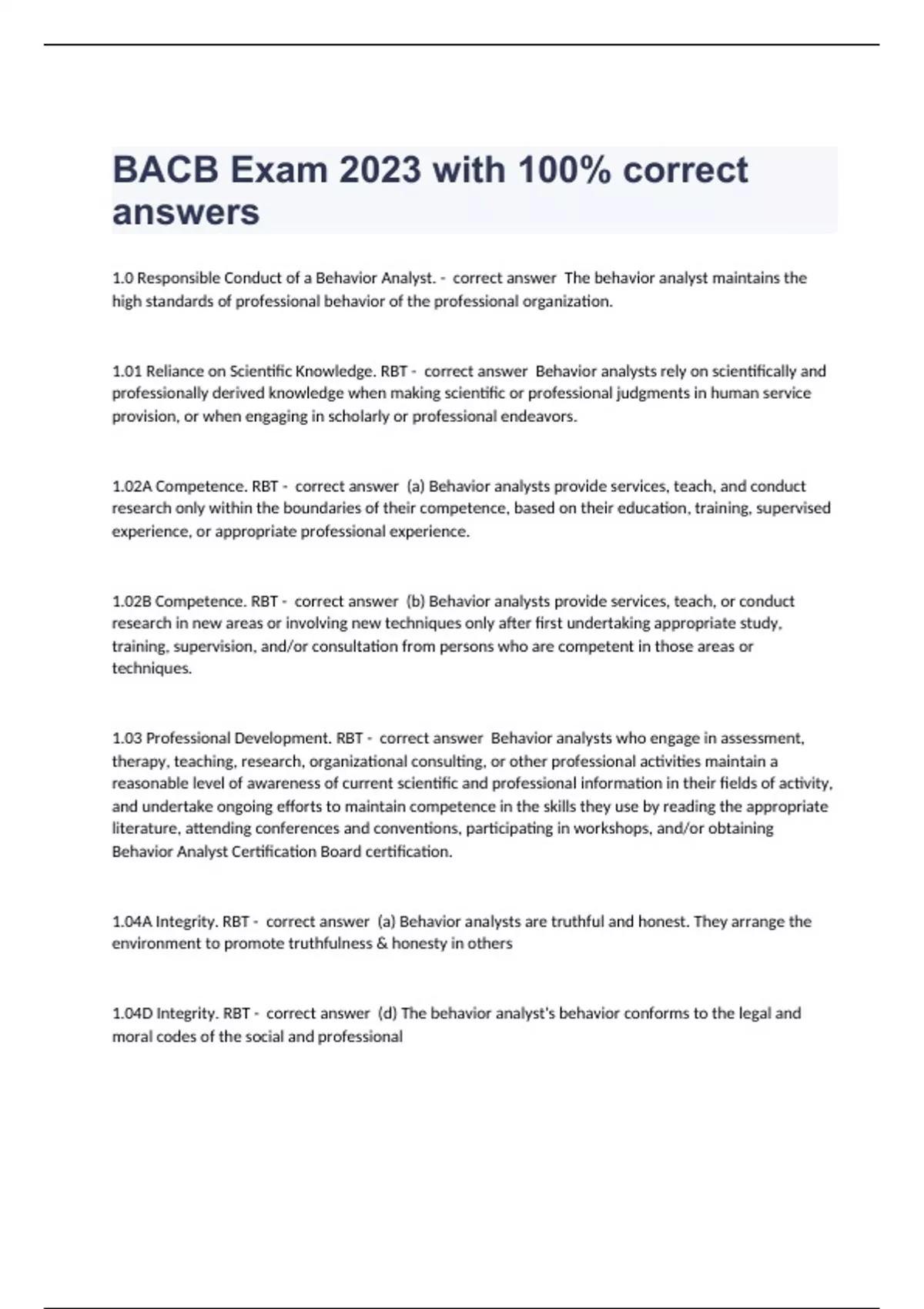 BACB Exam exam 2023 with 100% correct answers