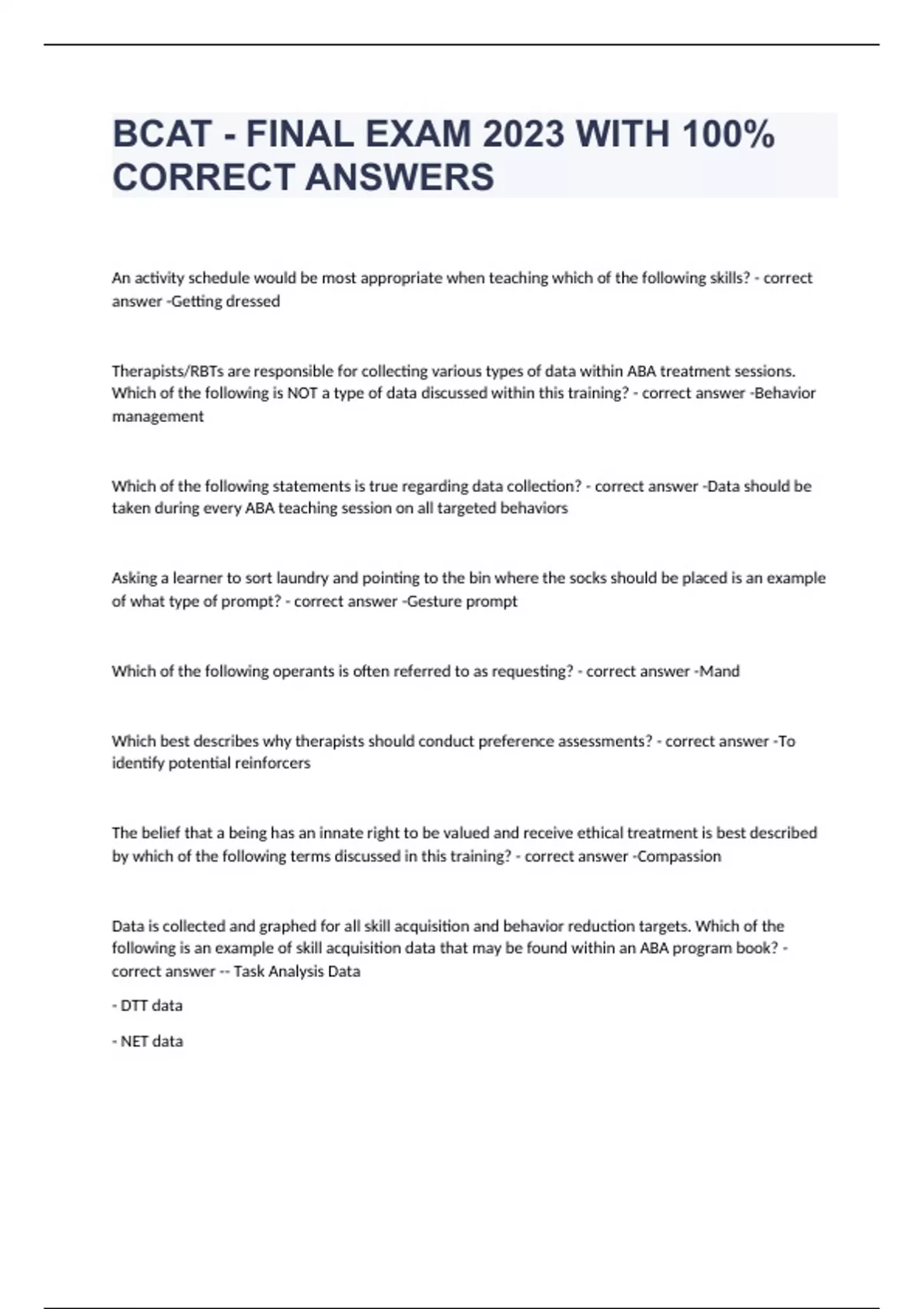 BCAT EXAM 2023 WITH 100% CORRECT ANSWERS