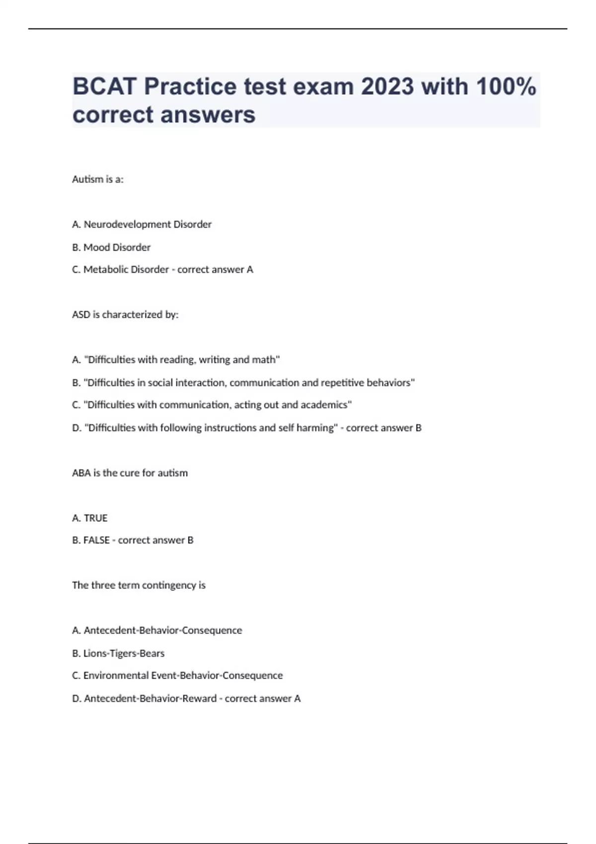 bcat exam 2023 with 100 correct answers