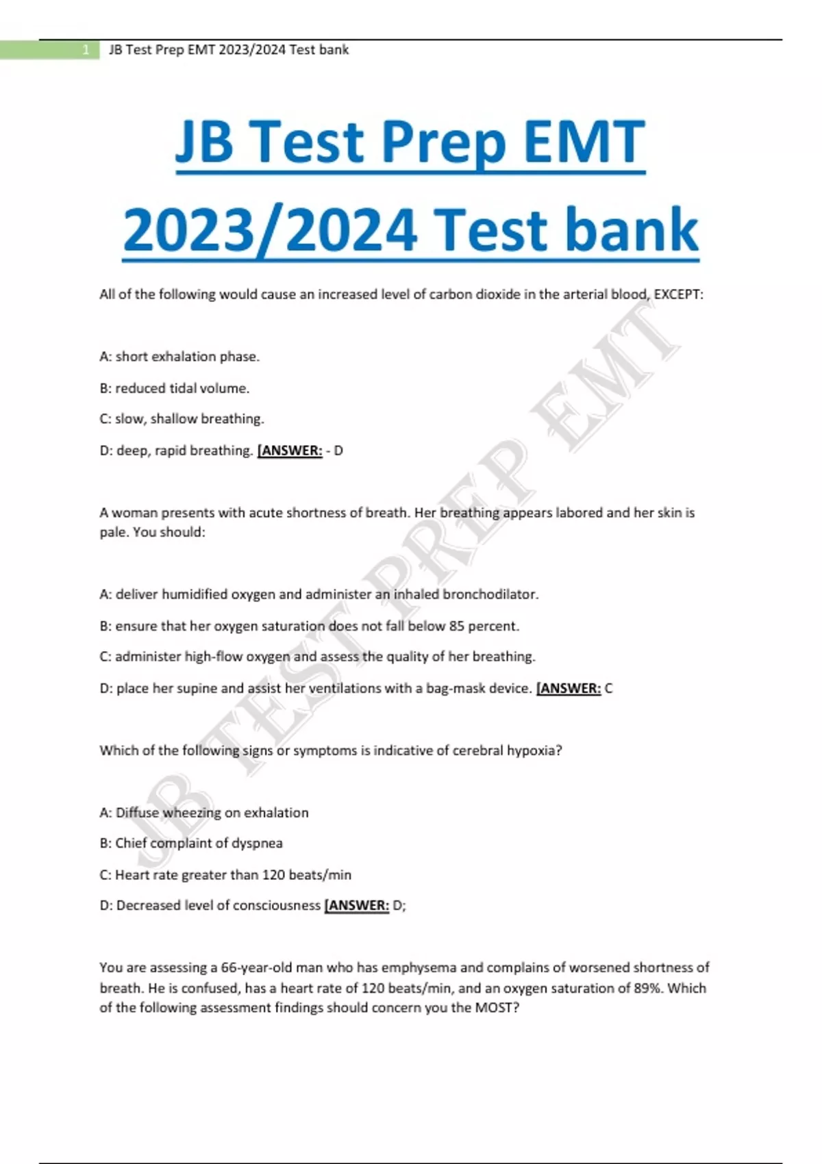 JB Test Prep EMT 2023/2024 Test bank Solved 100%,JB Test Prep EMT 2023/2024 Test bank Solved 100%,JB Test Prep EMT 2023/2024 Test bank Solved 100%,JB Test Prep EMT 2023/2024 Test bank Solved 100%