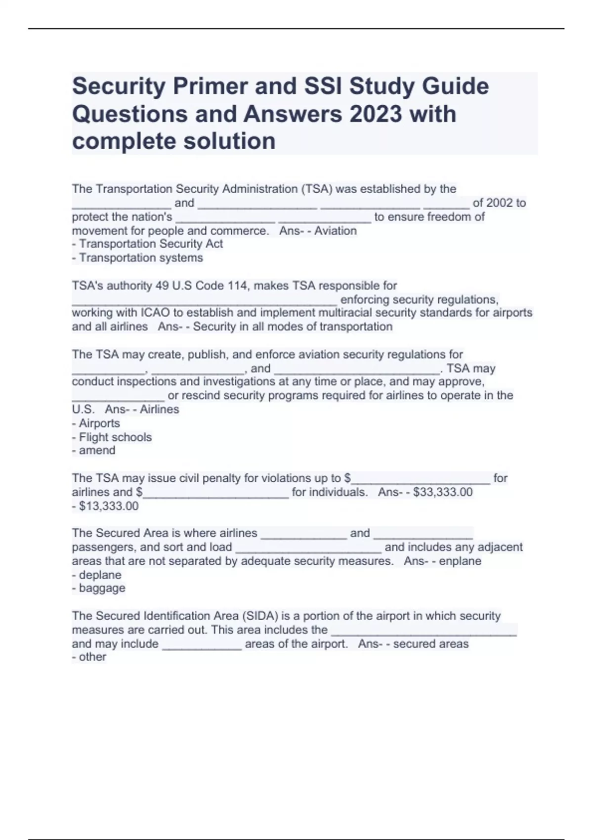 Security Primer and SSI Study Guide Questions and Answers 2023 with complete solution