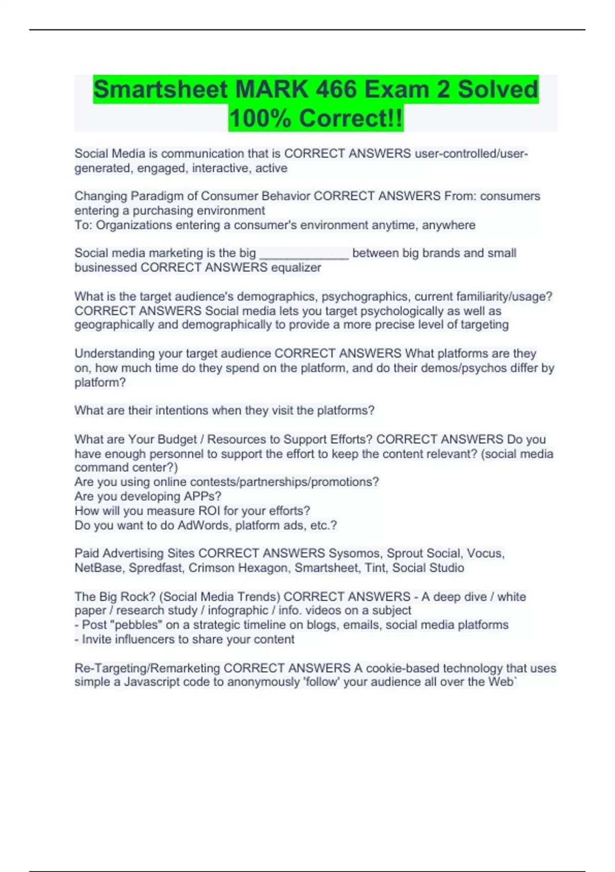 Smartsheet MARK 466 Exam 2 Solved 100% Correct!!
