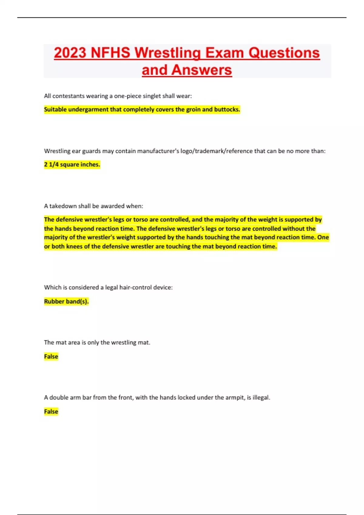 - 2023 nfhs wrestling exam