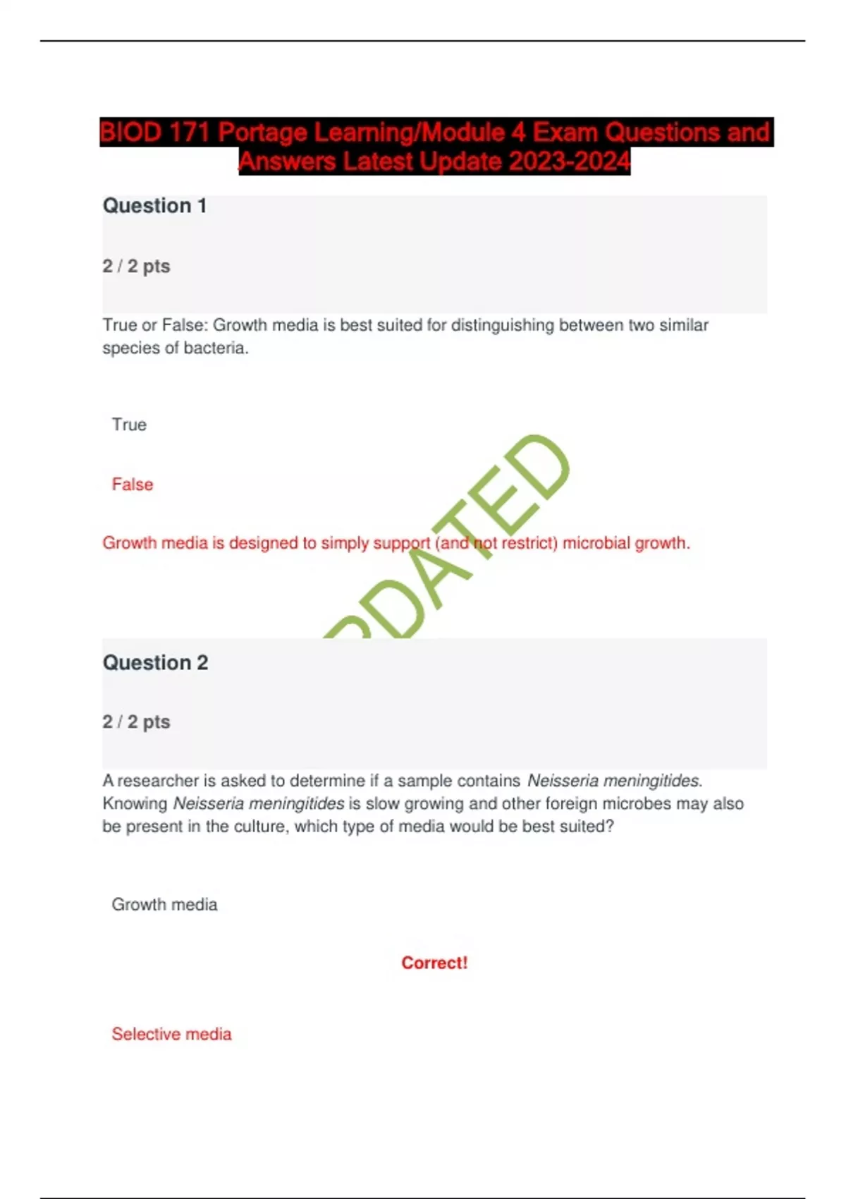 BIOD 171 Portage Learning/Module 4 Exam Questions and Answers Latest Update