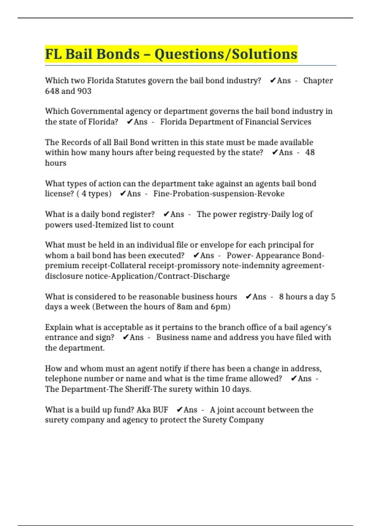 FL Bail Bonds – Questions/Solutions