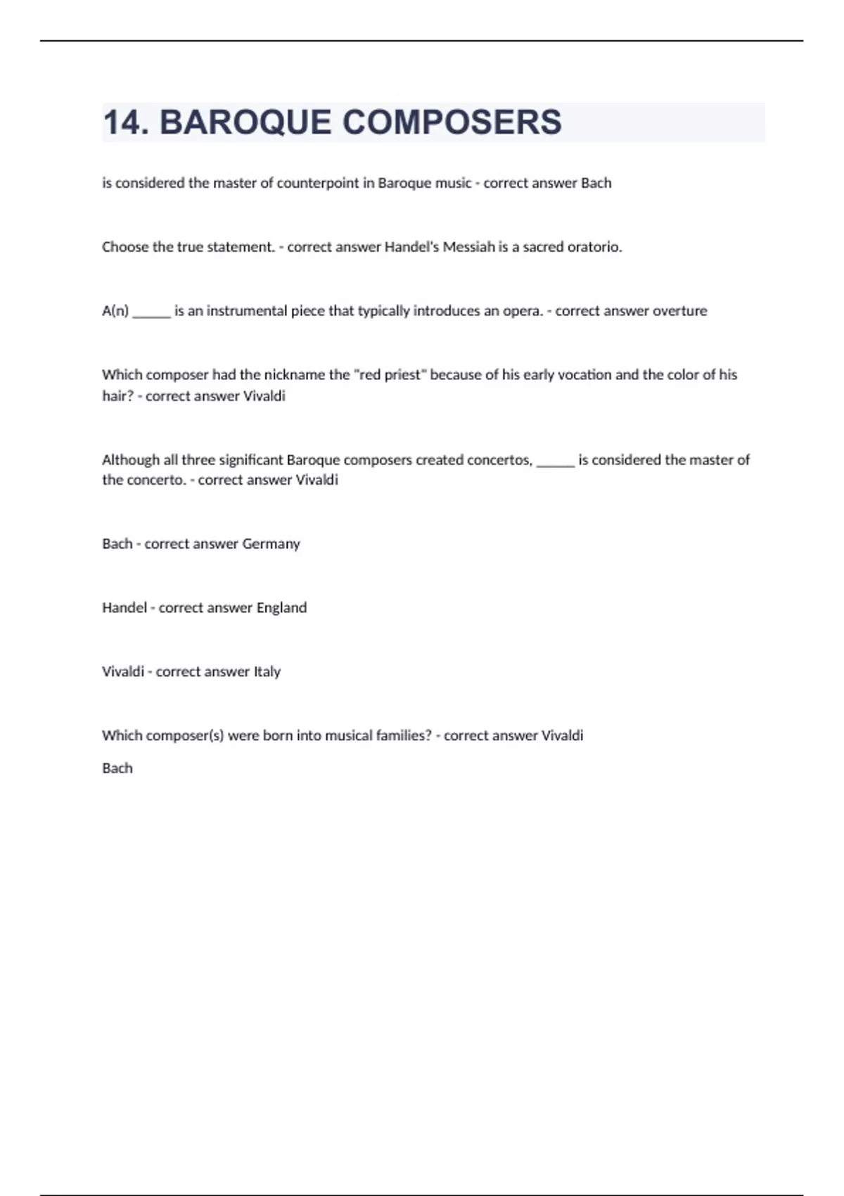 14. BAROQUE COMPOSERS fully solved graded A+ 2023