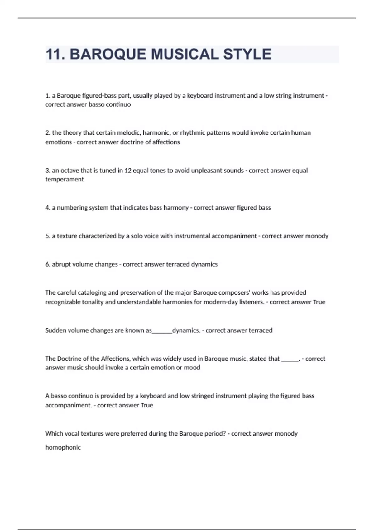 11. BAROQUE MUSICAL STYLE with verified solutions 2023