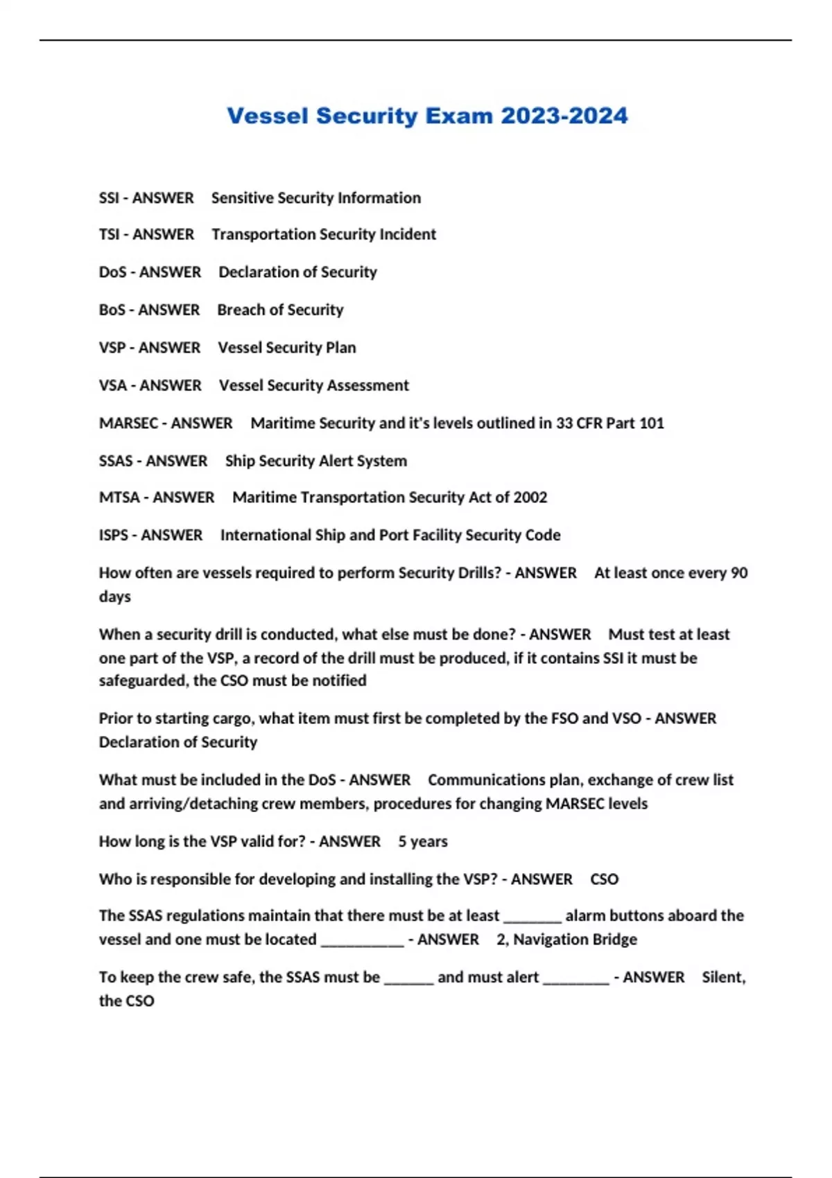 Vessel Security Exam ...