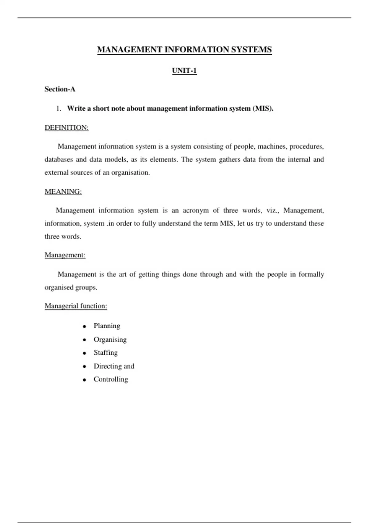 MANAGEMENT INFORMATION SYSTEM QUESTION AND ANSWER