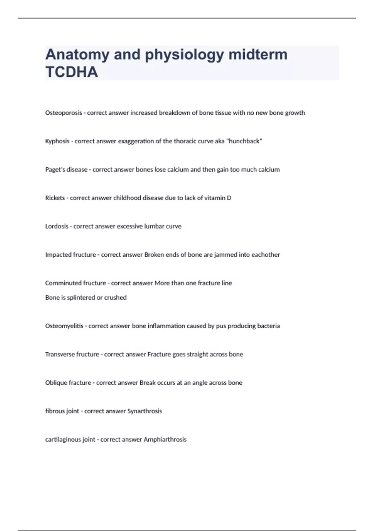 Anatomy and physiology midterm TCDHA fully solved 2023/2024