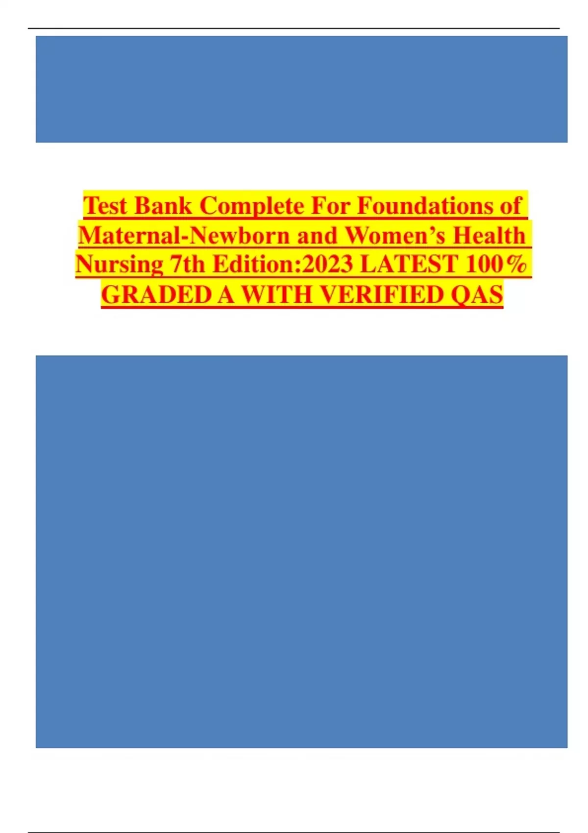 , Foundations of Maternal-Newborn and Women's Health Nursing 7th Edition Murray Test Bank