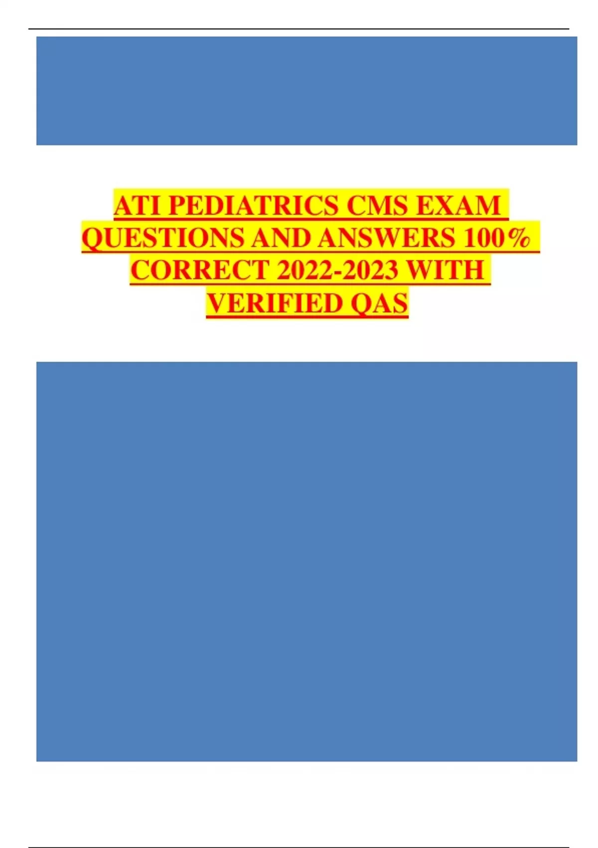 ,ATI PEDIATRICS CMS EXAM QUESTIONS AND