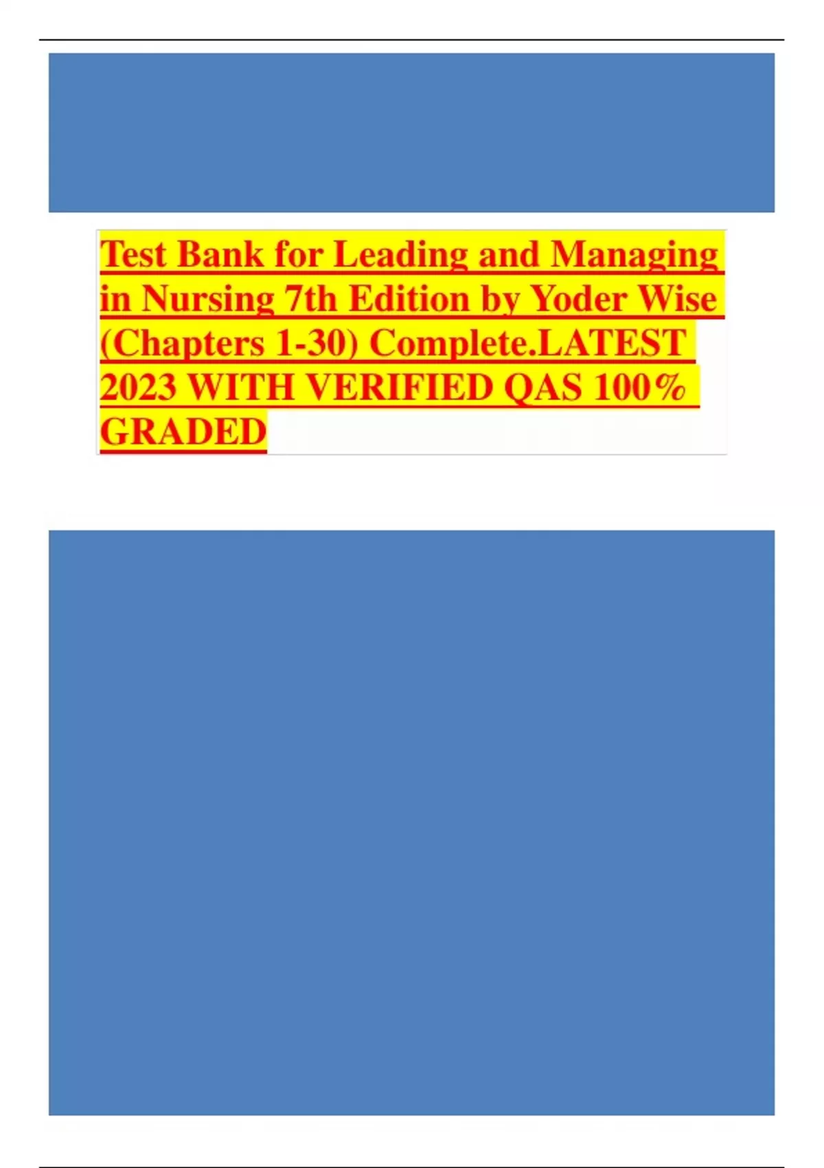 Test Bank for Leading and Managing in Nursing 7th Edition by Yoder Wise (Chapters 1-30) Complete.