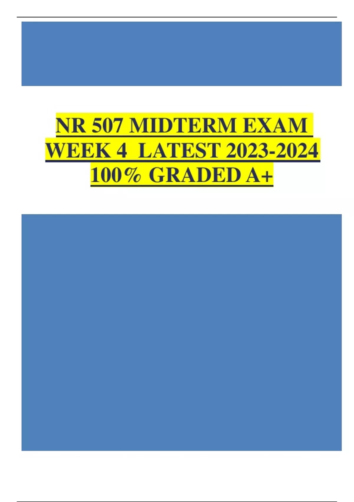 NR 507 MIDTERM EXAM WEEK 4 – QUESTION AND ANSWERS (Verified Answers) Download To Score A