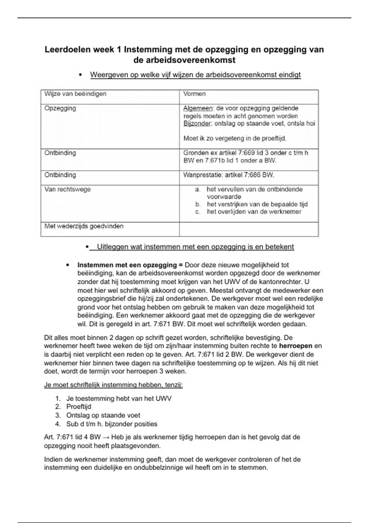 Leerdoelen week 1 Instemming met de opzegging en opzegging van