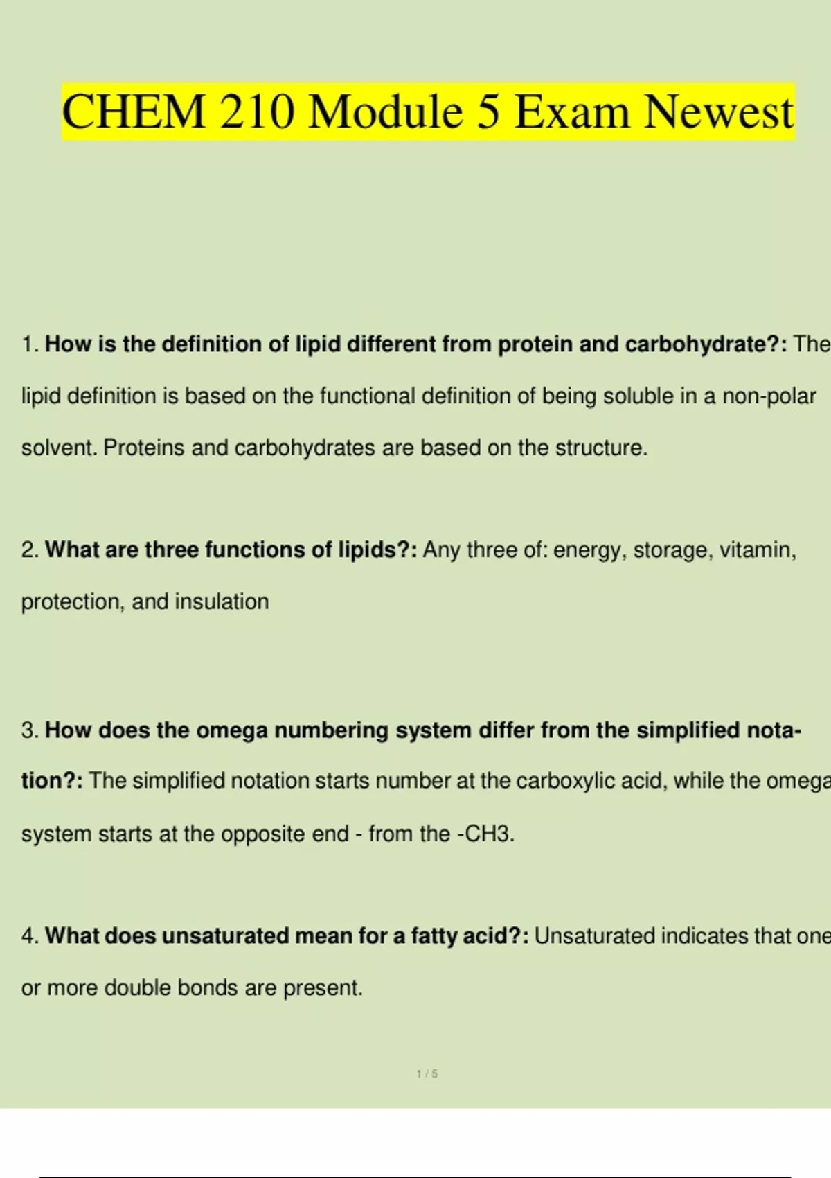 CHEM 210 Module 5 Exam Newest Questions and Answers (2023/2024) (Verified by Expert) CHEM 210 Module 5 Exam Newest Questions and Answers (2023/2024) (Verified by Expert) CHEM 210 Module 5 Exam Newest Questions and Answers (2023/2024) (Verified by Expert)