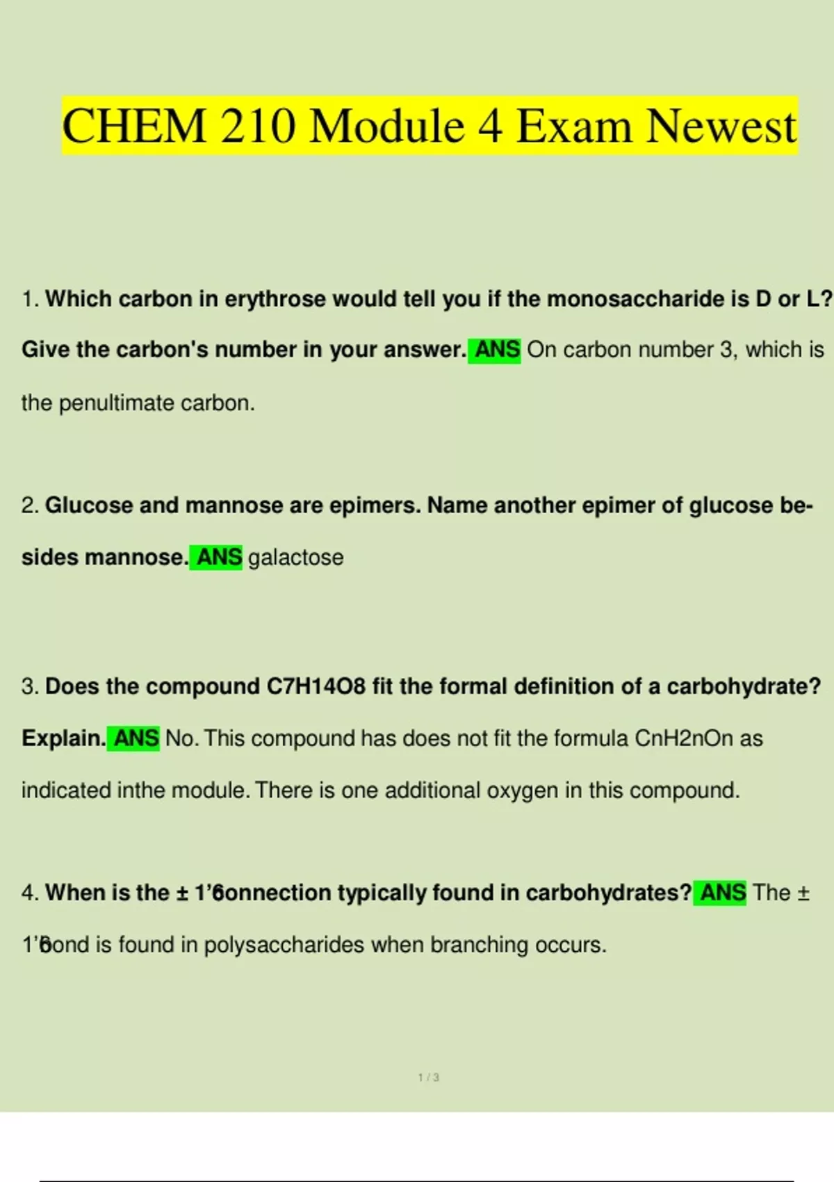 CHEM 210 Module 4 Exam Newest Questions and Answers (2023/2024) (Verified by Expert)