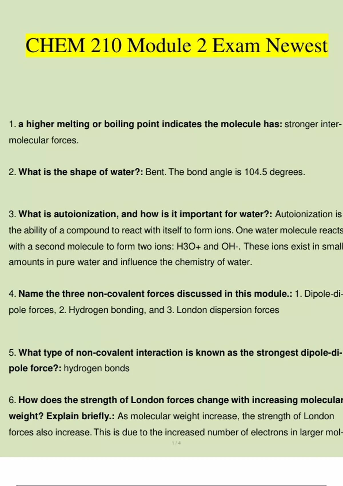 CHEM 210 Module 2 Exam Newest Questions and Answers (2023/2024) (Verified by Expert) CHEM 210 Module 2 Exam Newest Questions and Answers (2023/2024) (Verified by Expert) CHEM 210 Module 2 Exam Newest Questions and Answers (2023/2024) (Verified by Expert)