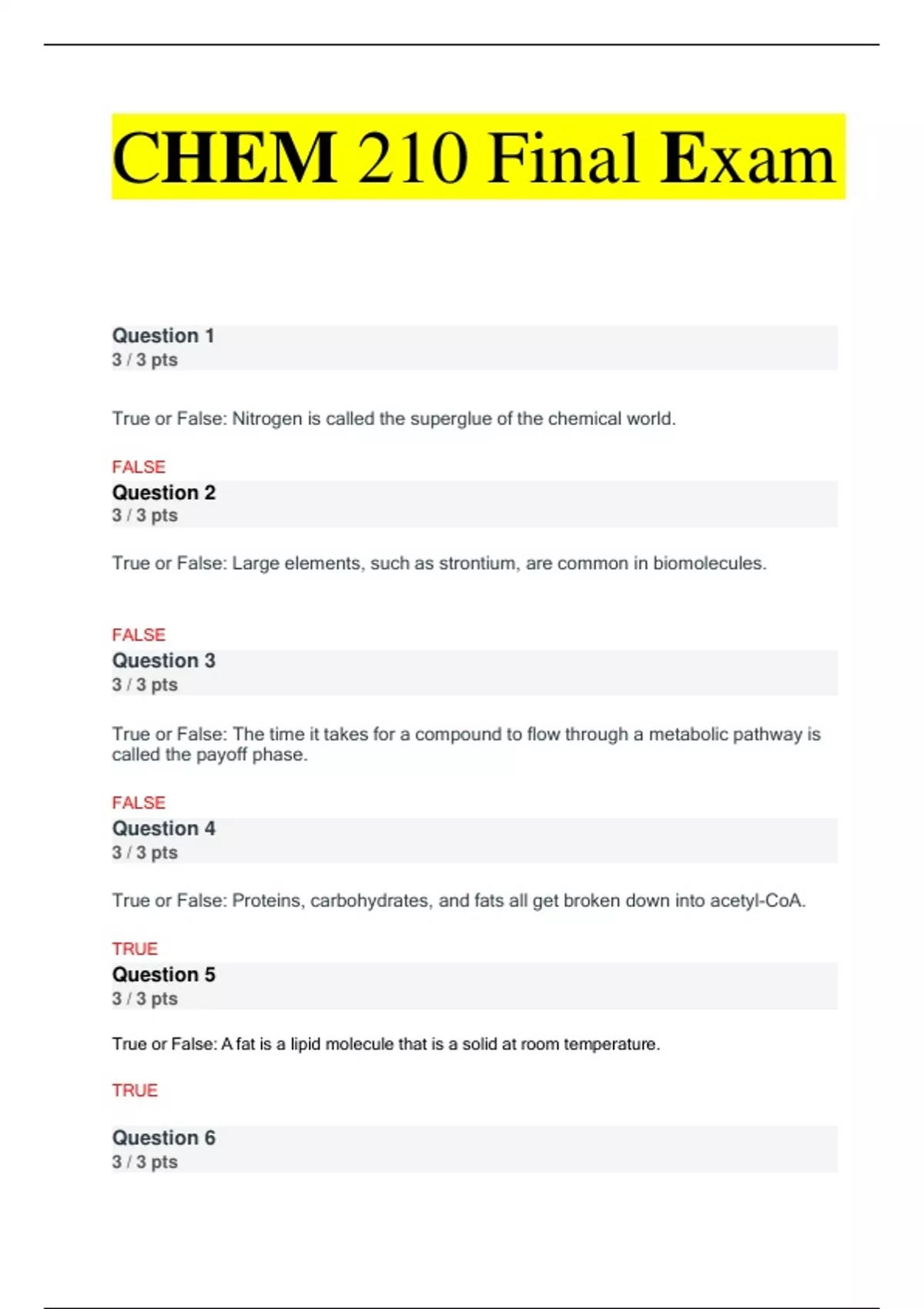 CHEM 210 Final Exam