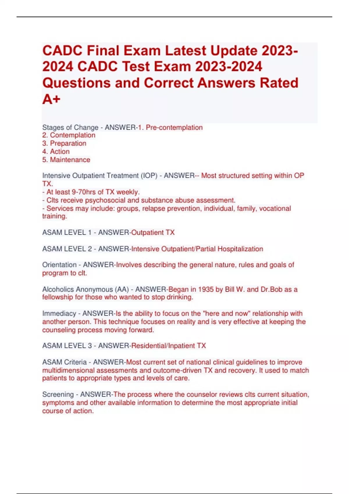 CADC Final Exam Latest Update 2023- 2024 CADC Test Exam Questions and Correct Answers Rated A+