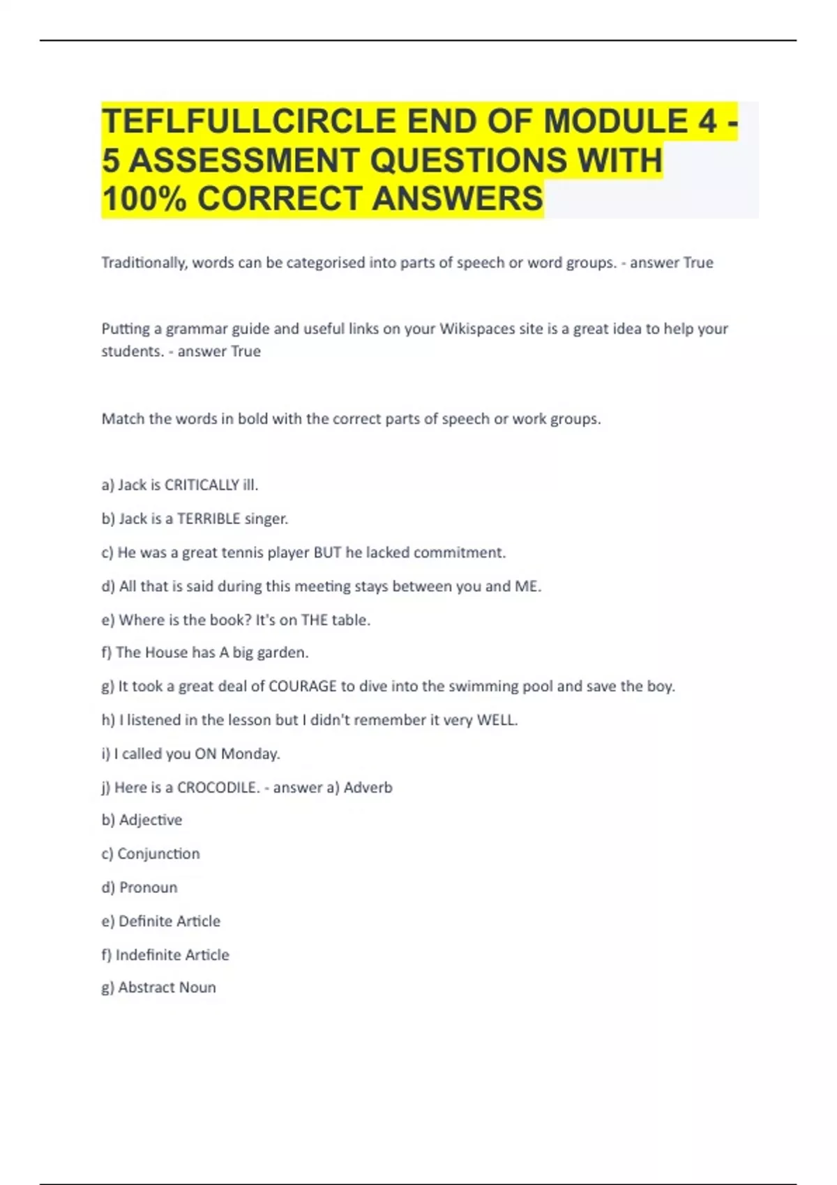 TEFLFULLCIRCLE END OF MODULE 4 - 5 ASSESSMENT QUESTIONS WITH 100% CORRECT ANSWERS