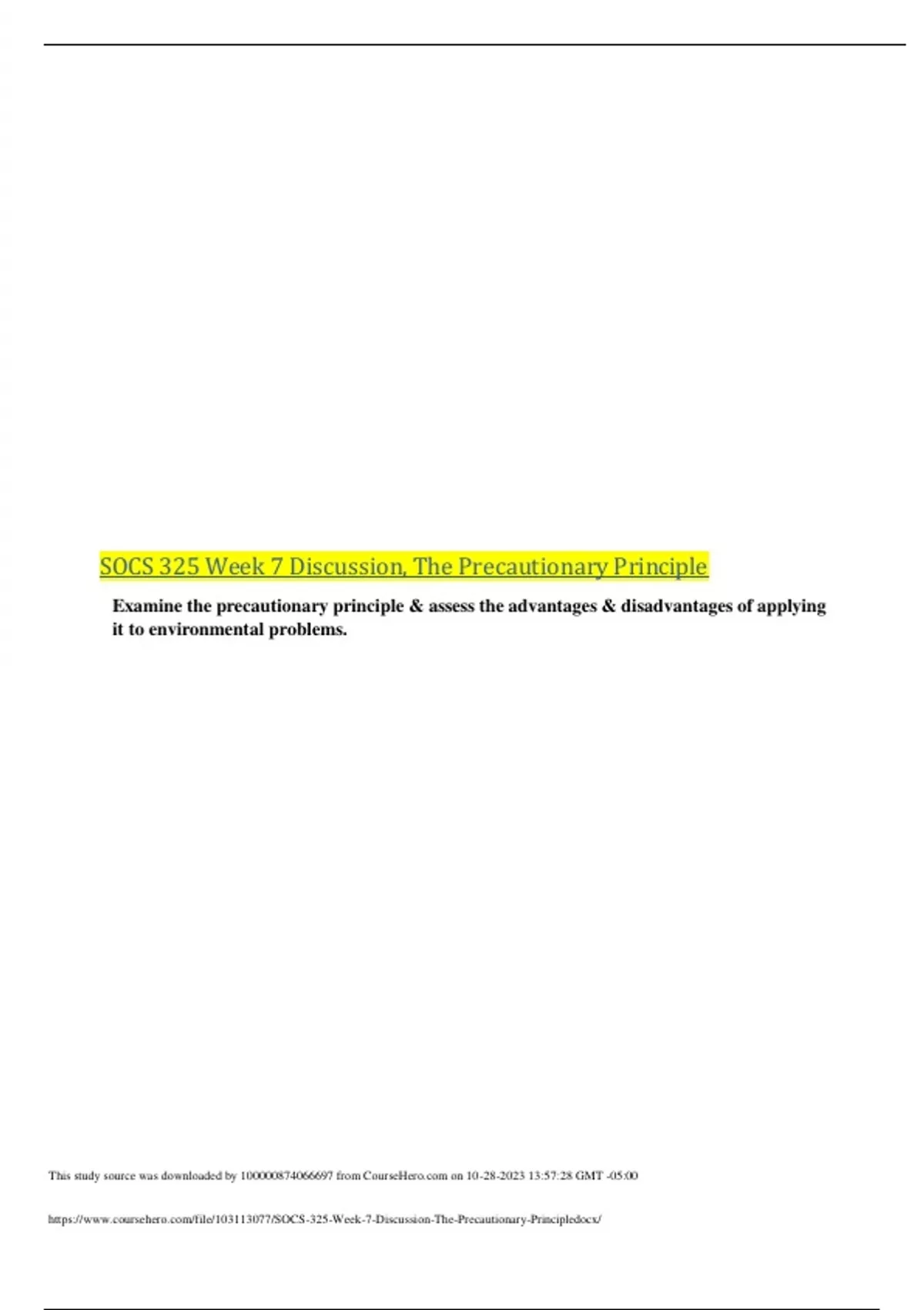 SOCS 325 Week 7 Discussion, The Precautionary Principle