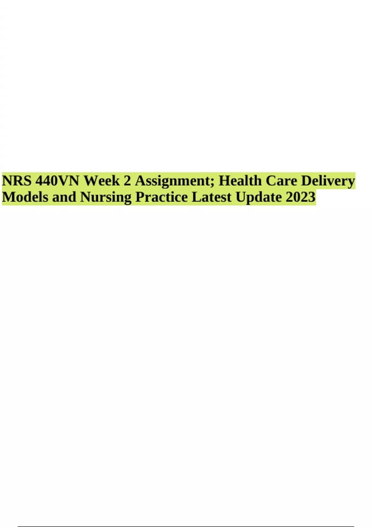 NRS 440VN Week 2 Assignment; Health Care Delivery Models and Nursing Practice Latest Update 2023