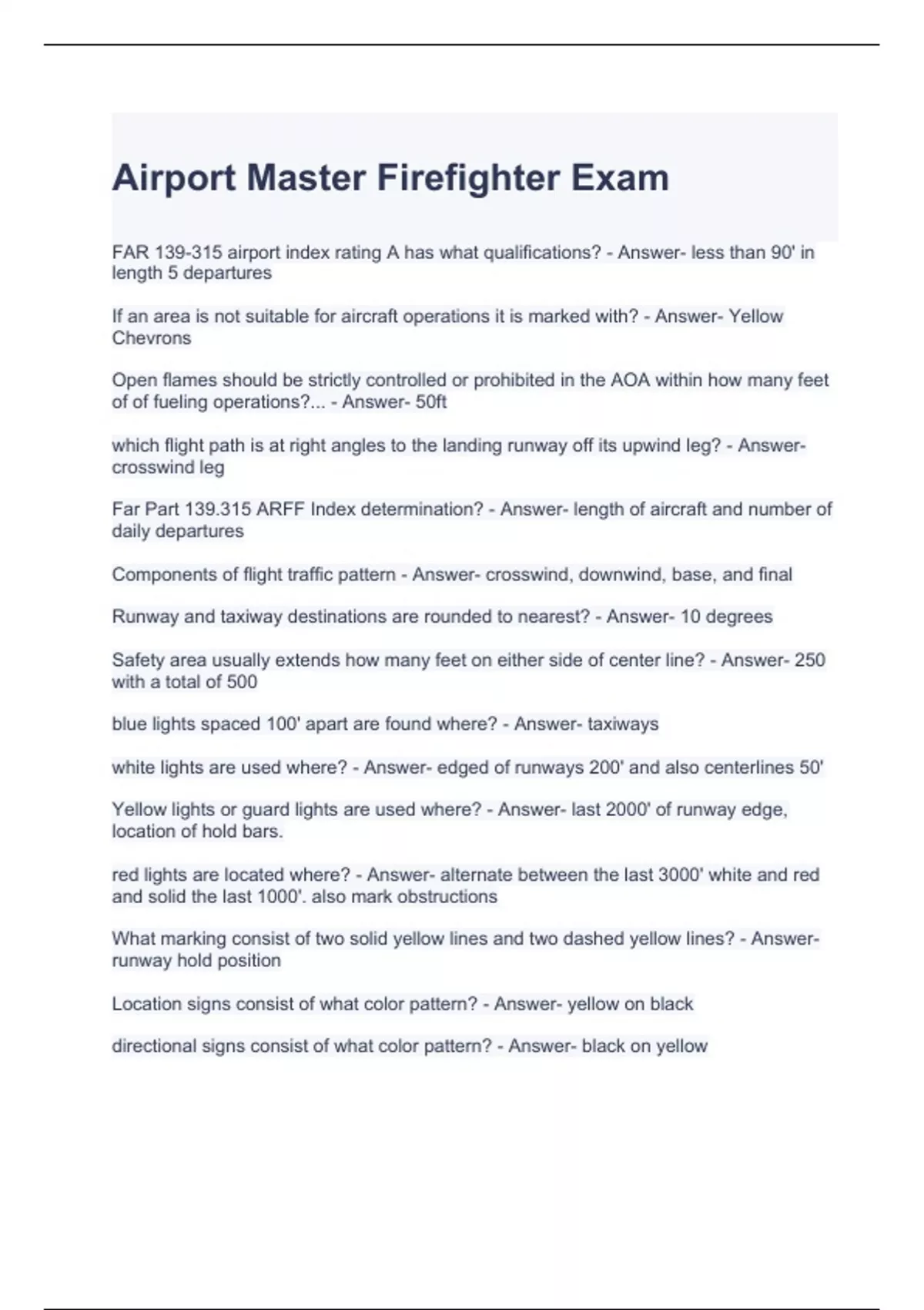 Airport Master Firefighter Exam with complete solutions