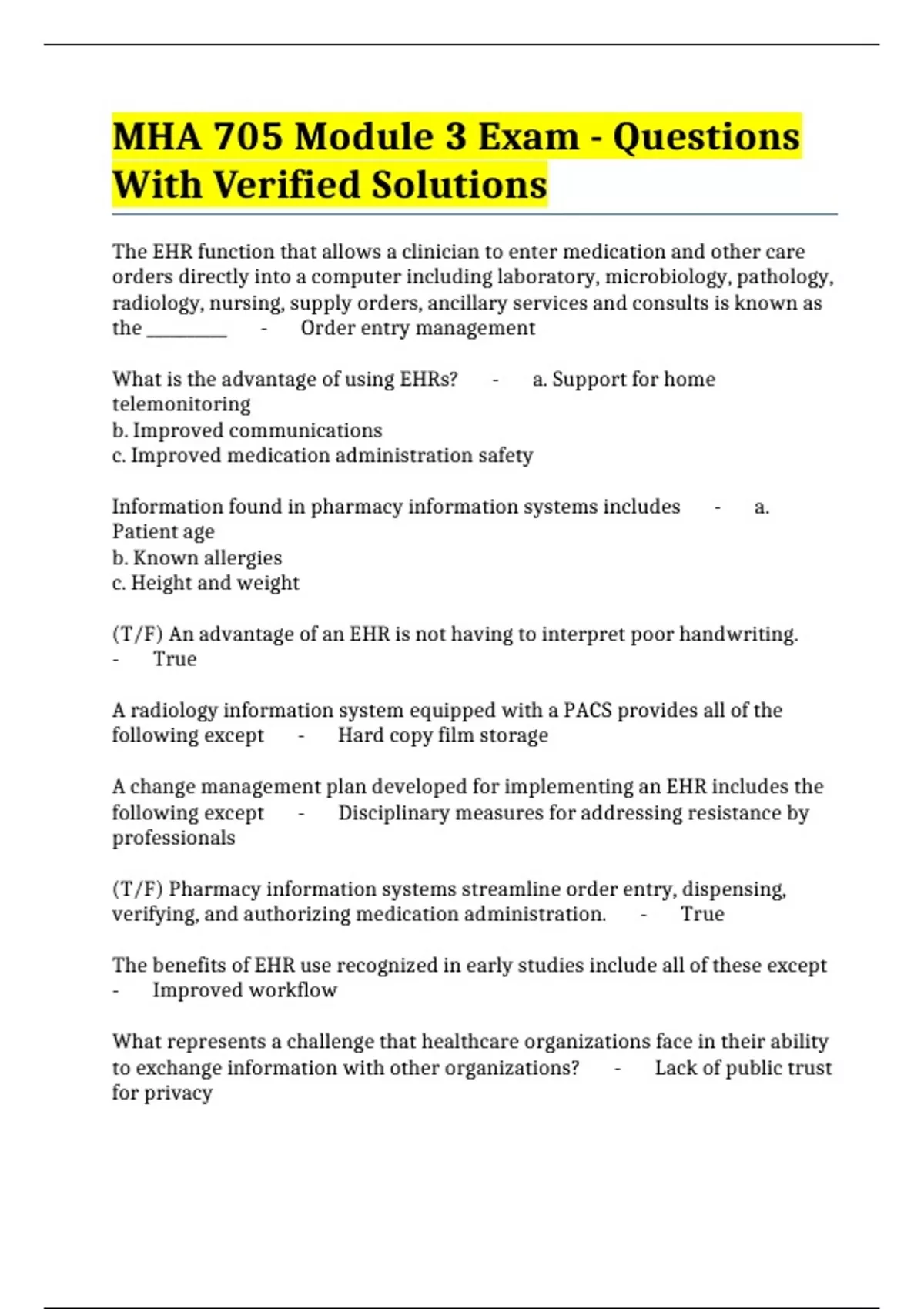 MHA 705 Module 3 Exam - Questions With Verified Solutions