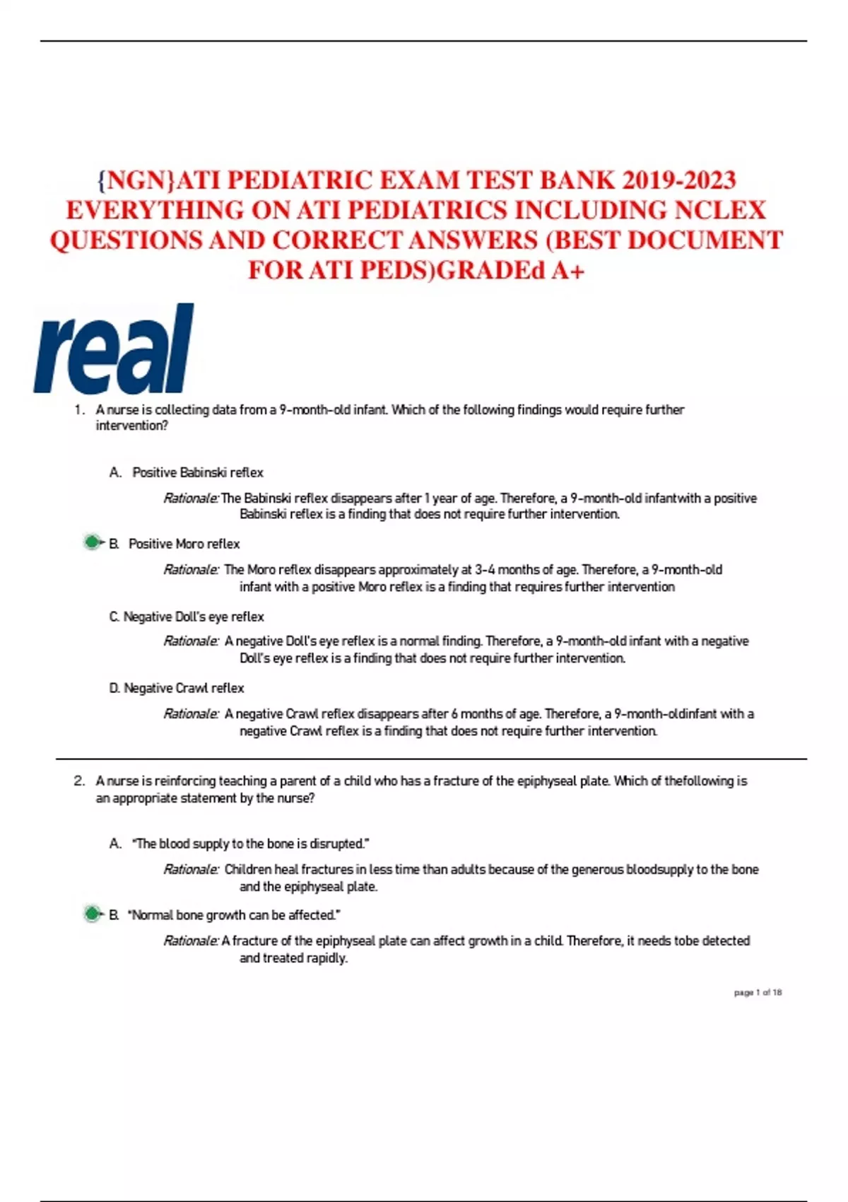 {NGN}ATI PEDIATRIC EXAM TEST BANK EVERYTHING ON ATI PEDIATRICS INCLUDING NCLEX QUESTIONS AND CORRECT ANSWERS (BEST DOCUMENT FOR ATI PEDS)GRADEd A+