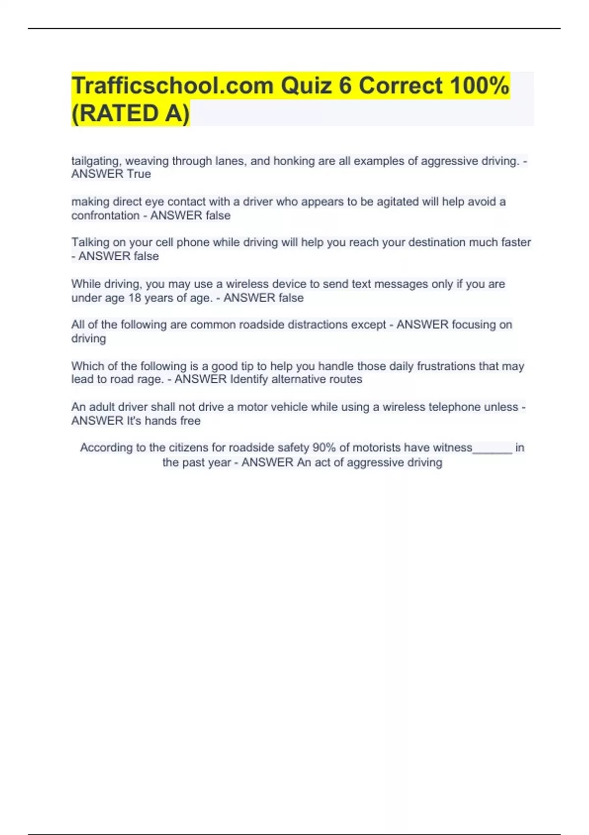 Trafficschool.com Quiz 6 Correct 100%(RATED A)
