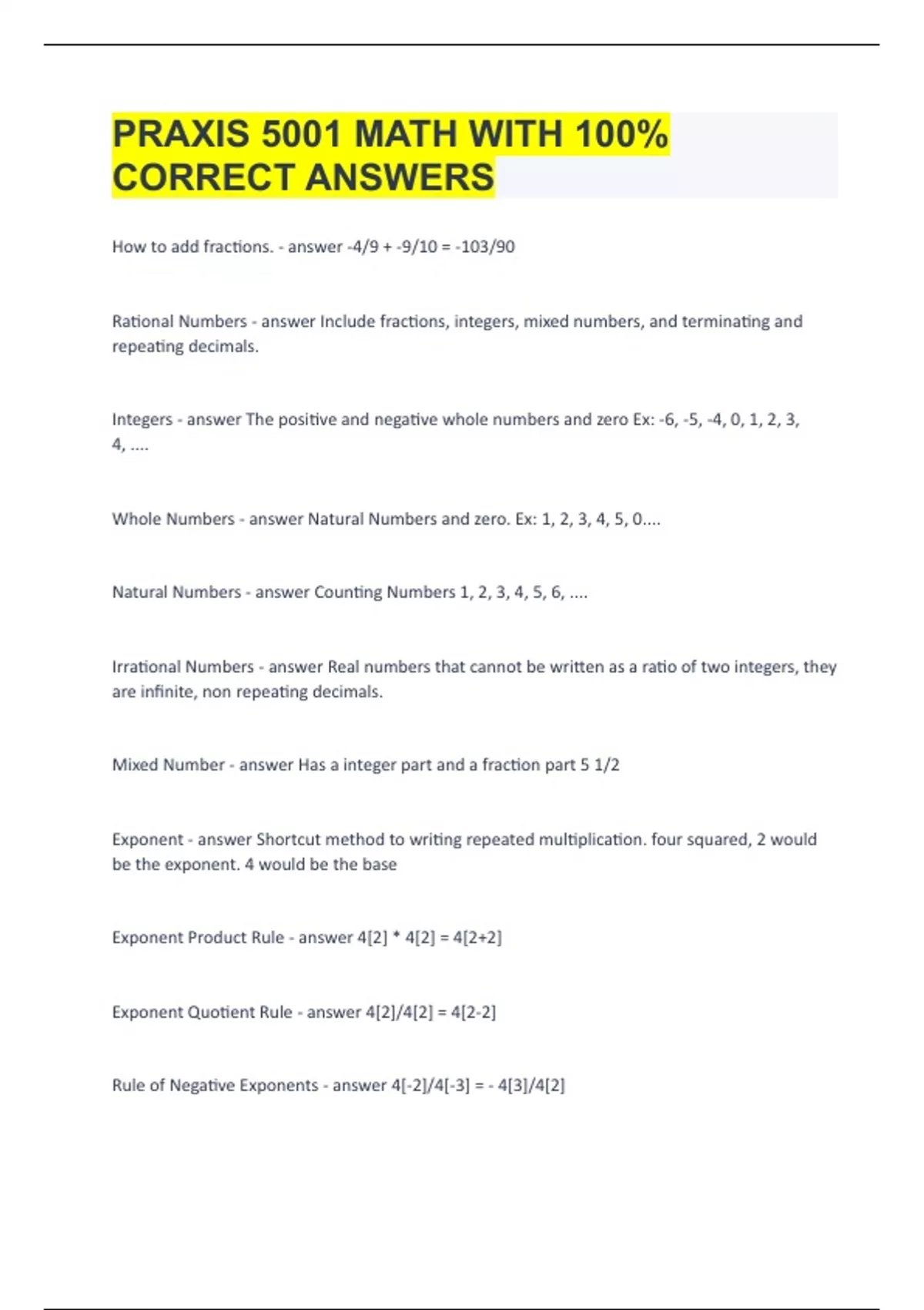 PRAXIS 5001 MATH WITH 100% CORRECT ANSWERS
