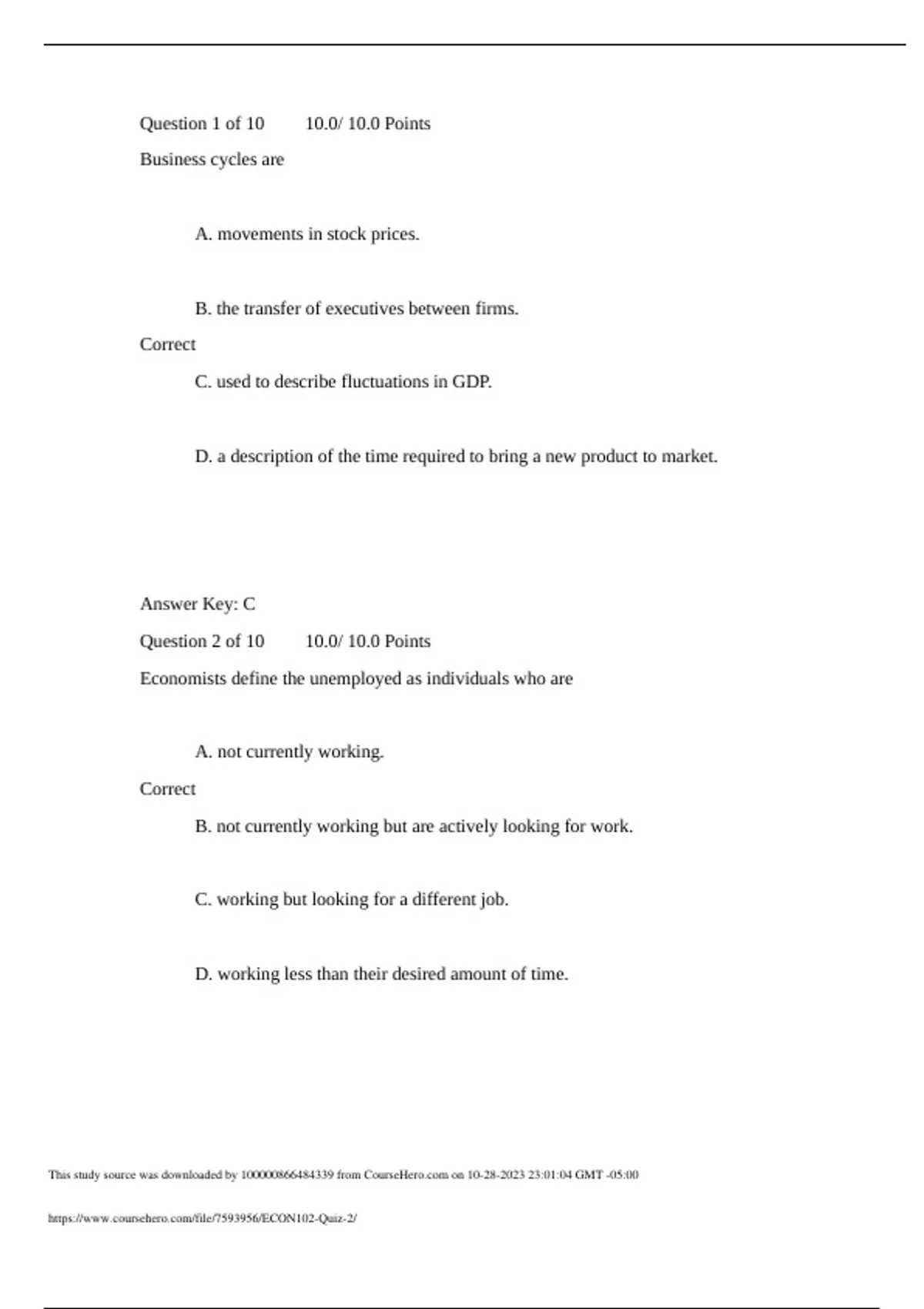 ECON102 Quiz 2 Questions and Answers 2023 with complete solution