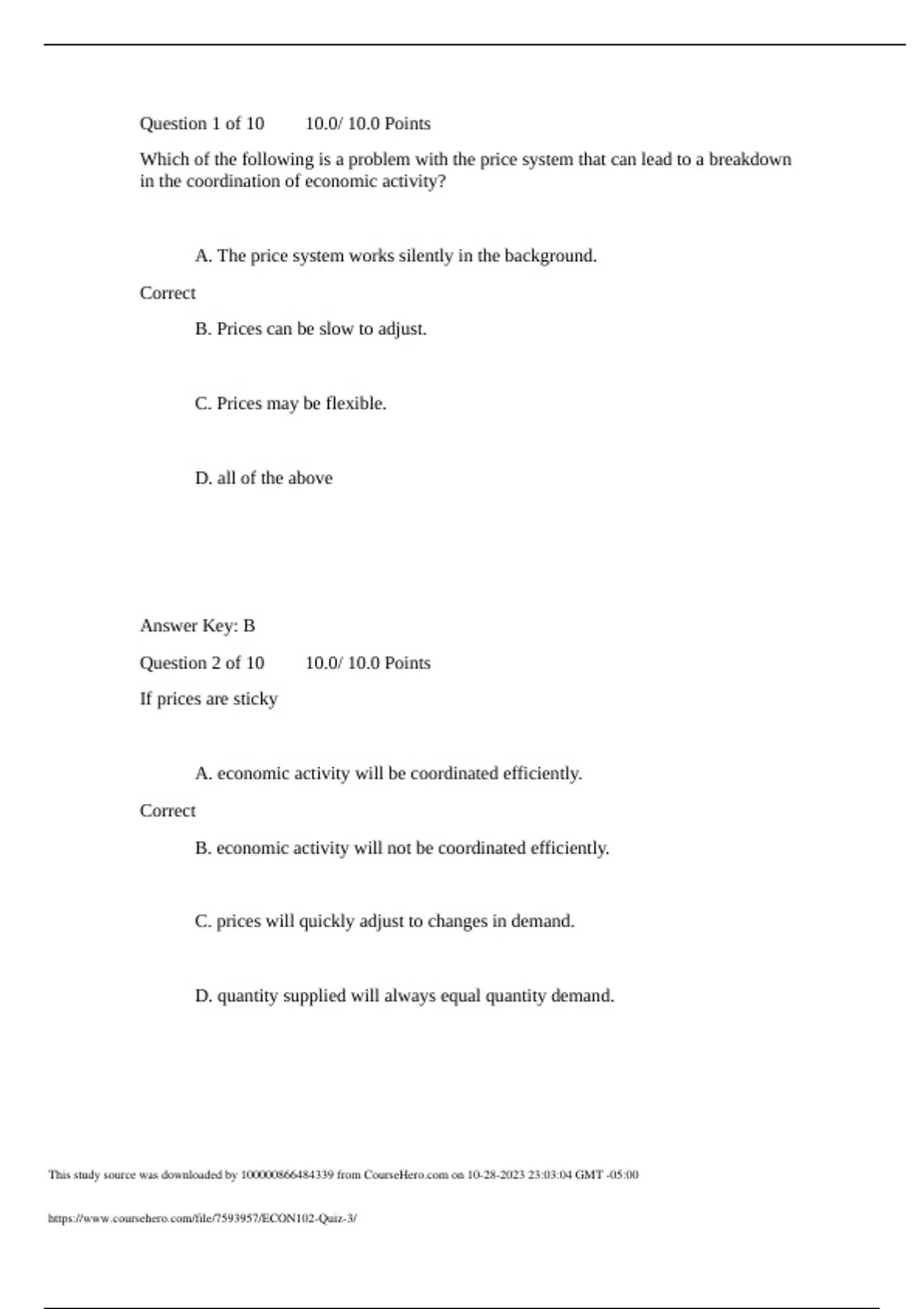ECON 102 Quiz 3 Latest 2023 with complete solutions