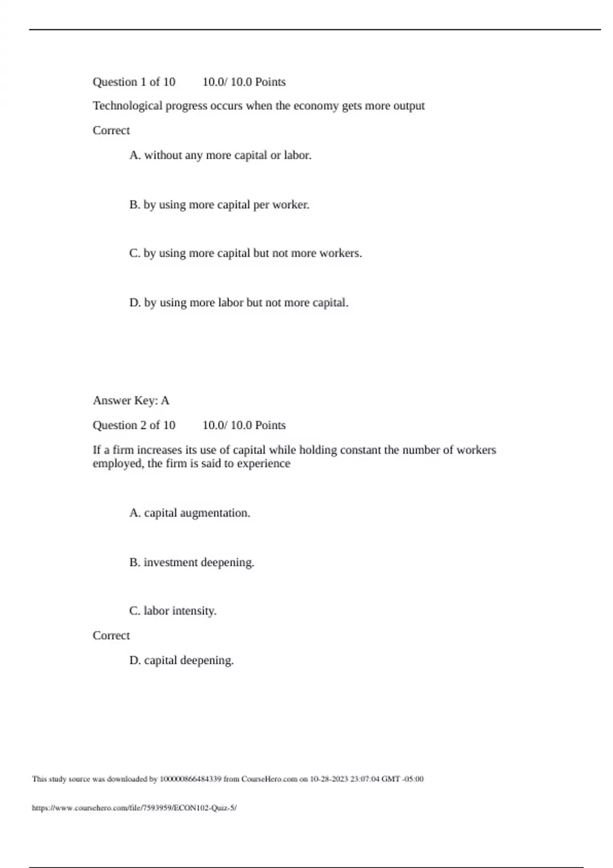 ECON 102 Quiz 1-5 Combined Tests 2023 with complete solution