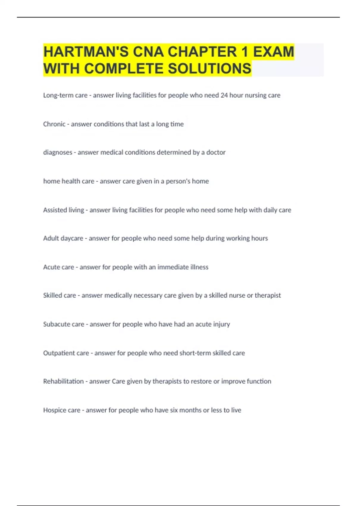 HARTMAN'S CNA CHAPTER 1 EXAM WITH COMPLETE SOLUTIONS