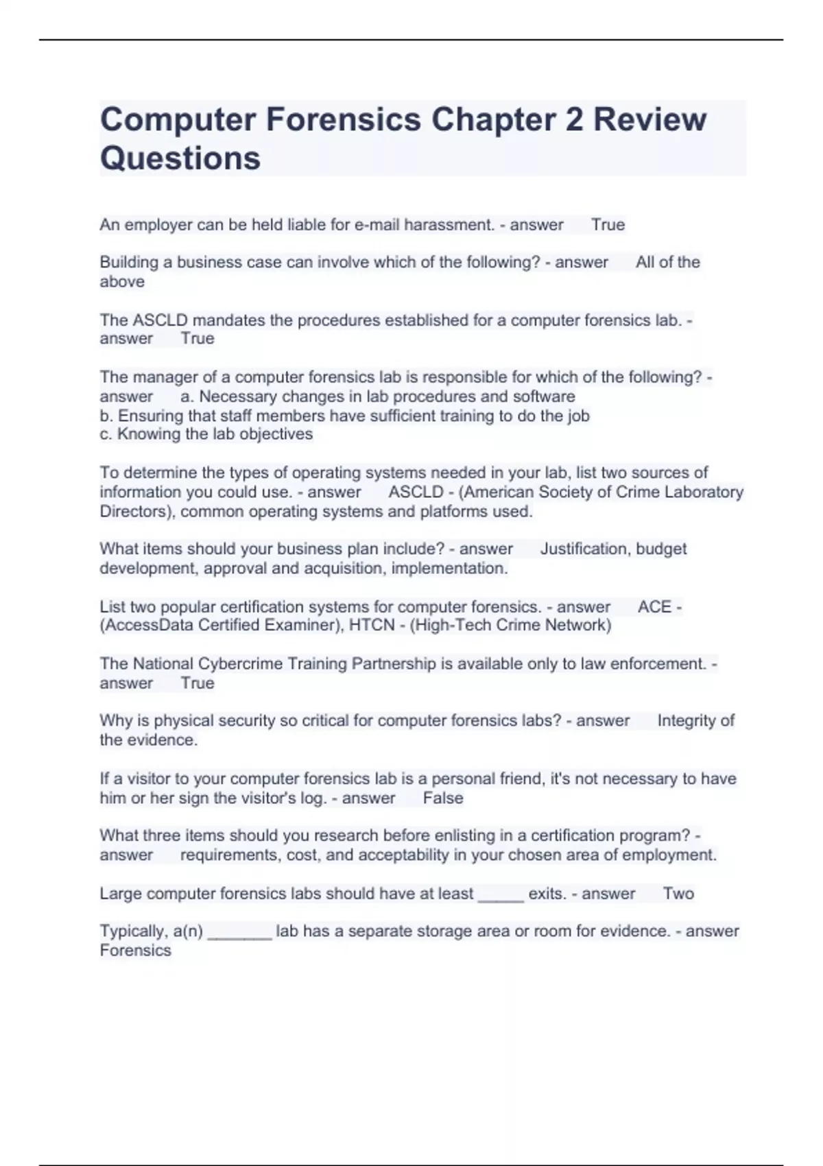 Computer Forensics Chapter 2 Review Questions Answered 100% correct 2023