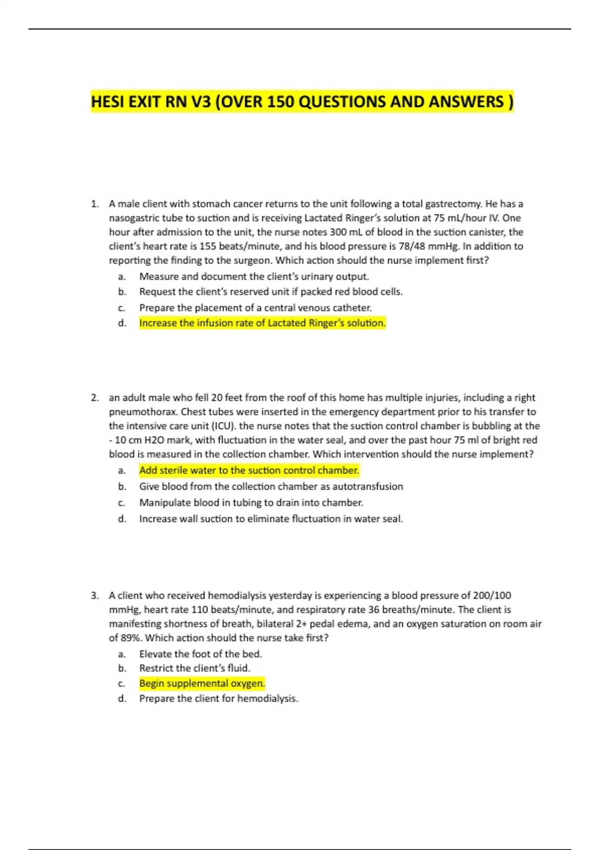 HESI EXIT RN V3 (OVER 150 QUESTIONS) VERIFIED AND GUARANTEED TEST BANK