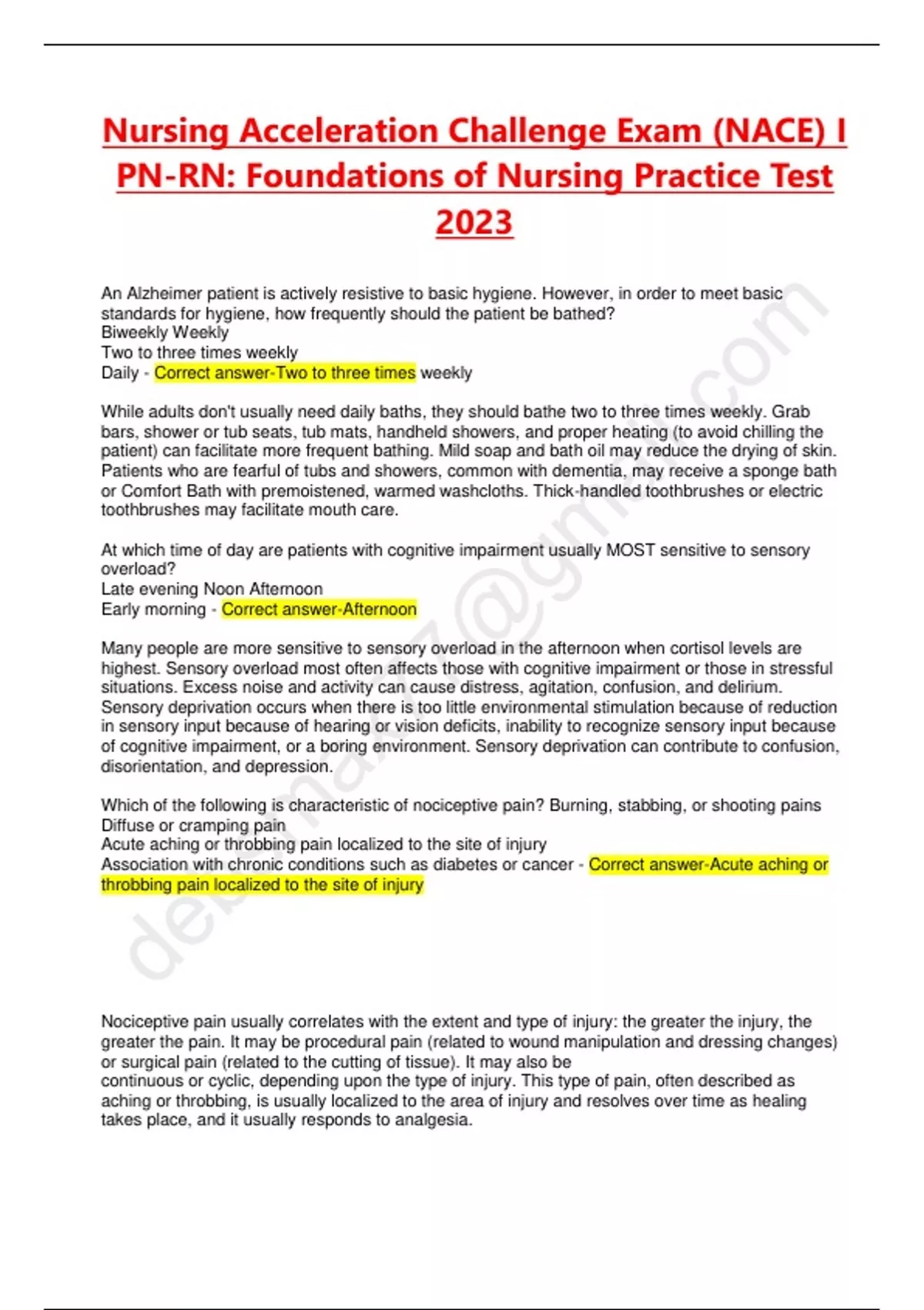 Nursing Acceleration Challenge Exam (NACE) I PN-RN: Foundations of Nursing Practice Test 2023