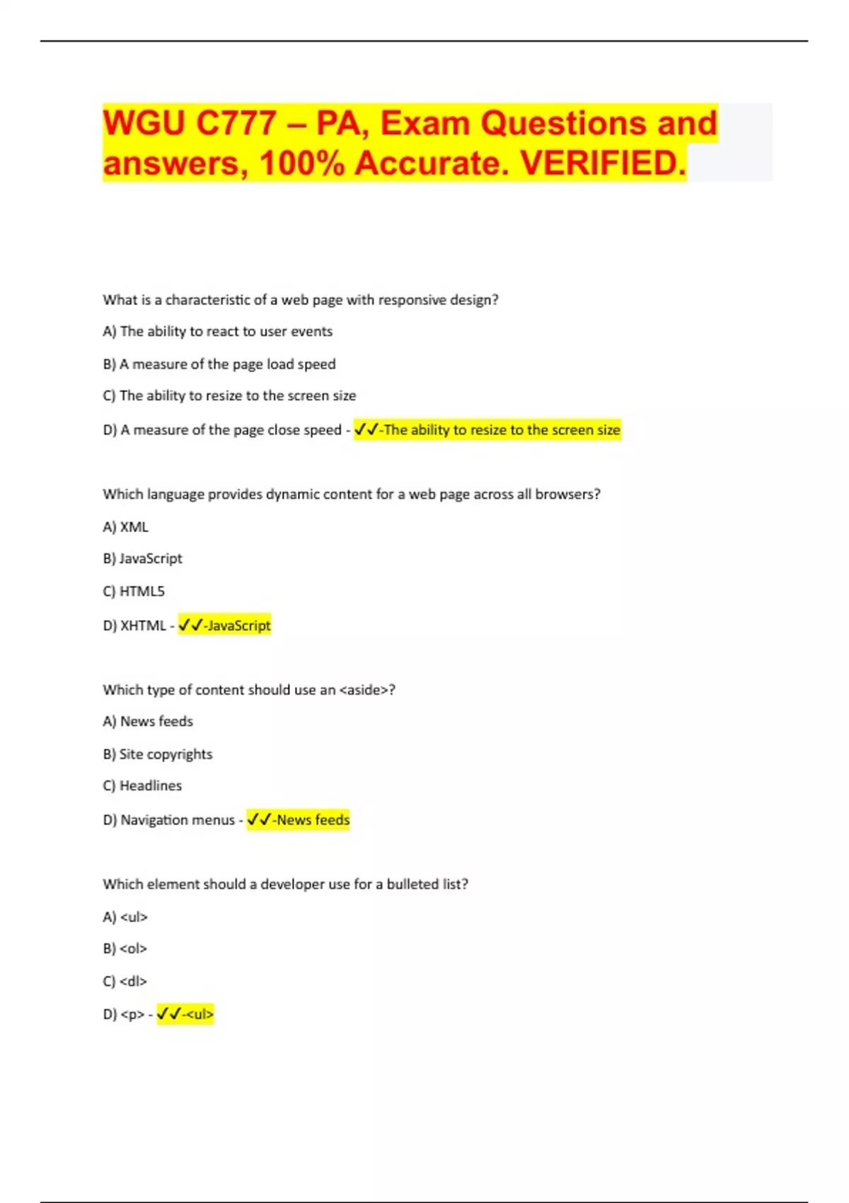 WGU C777 – PA, Exam Questions and answers, 100% Accurate. VERIFIED. 2024/ 25 update